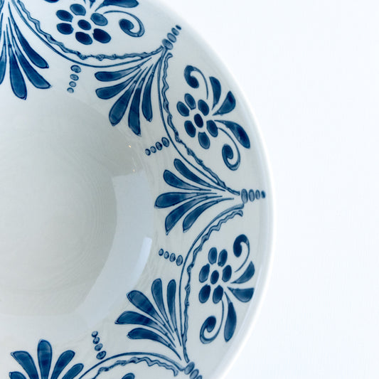 Cream & Blue Hand-Stamped Stoneware Bowl
