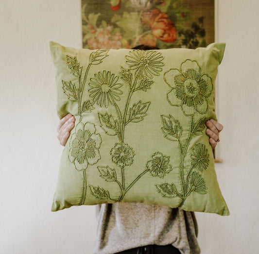 Cotton Printed Pillow with Ditsy Floral Patterns