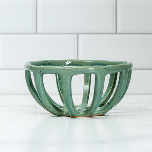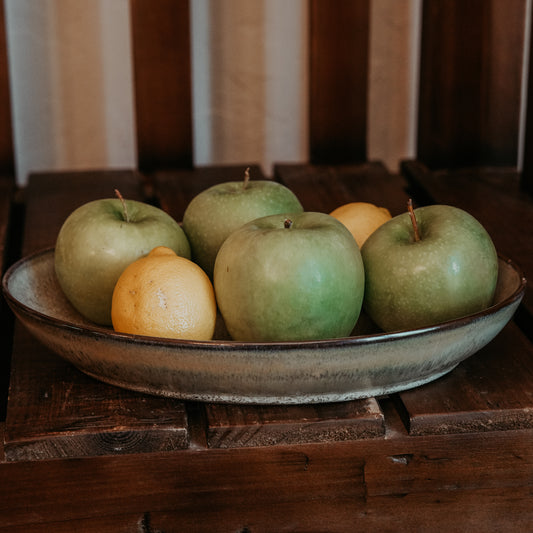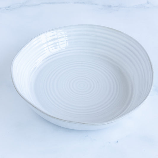 Cream & Blue Hand-Stamped Stoneware Bowl