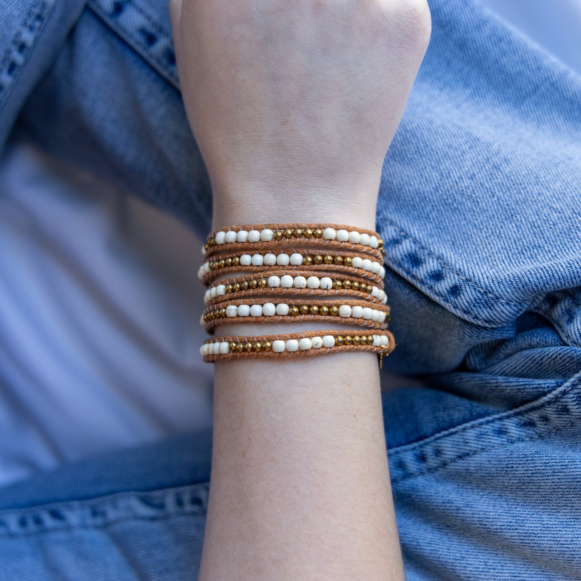 The 5 wrap-beaded bracelet is a stunning accessory that adds a touch of elegance and style to any outfit. With color choices including copper, white, black, white-multi, black-multi, black & bronze, or white & gold, there's a bracelet to suit every individual's taste and preference. Made with high-quality beads, this bracelet wraps around the wrist five times for a trendy layered look. Whether you're dressing up for a special occasion or looking to add some flair to your everyday attire, this beaded bracelet is the perfect accessory choice.