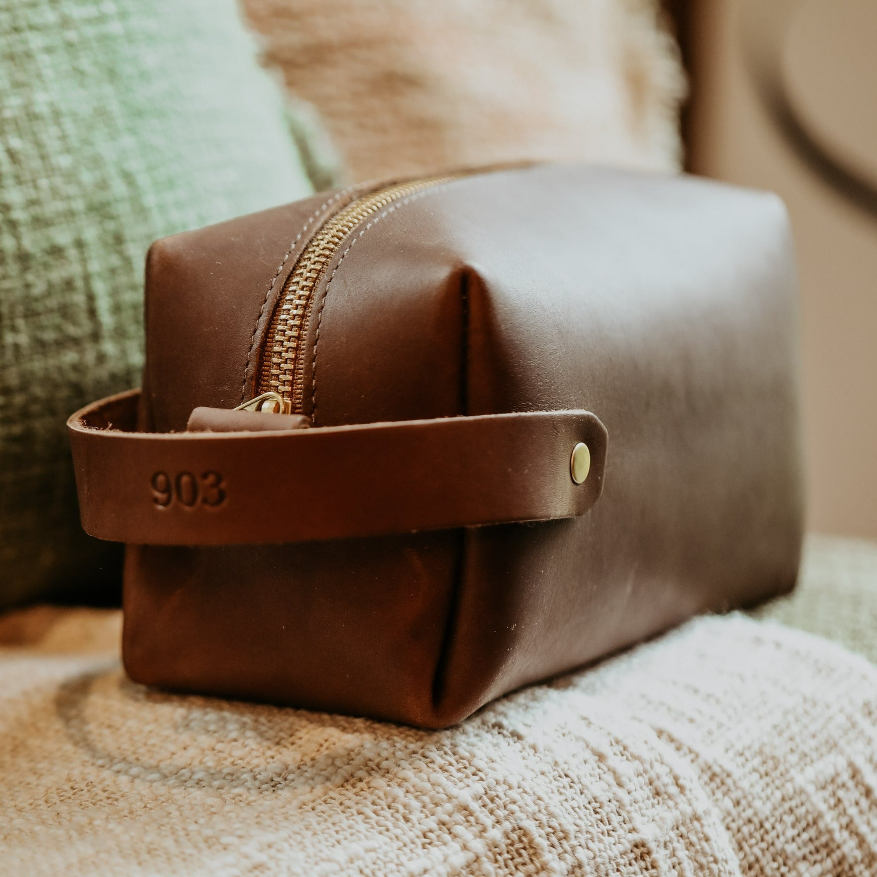 Carry your essentials in style with our full-grain leather travel bag. This bag is designed with a high-quality zipper, and has the extra detail of our 903 area code. It's a perfect reminder of where you have been and where you want to go.