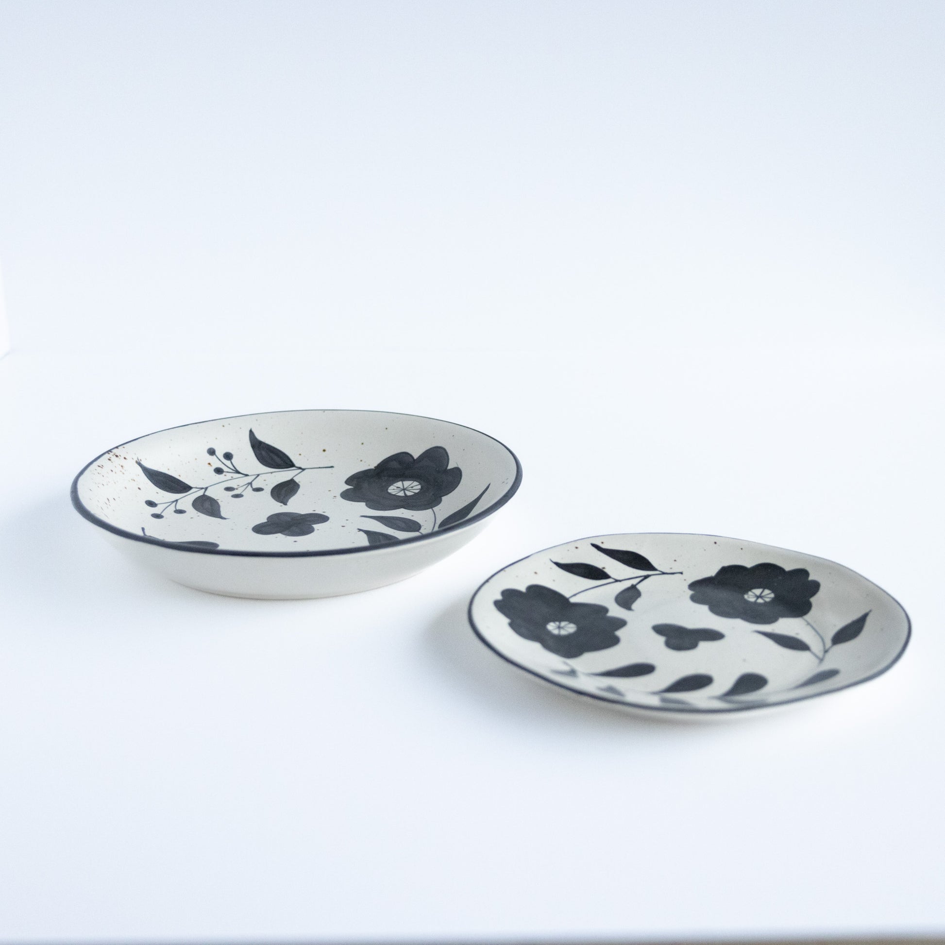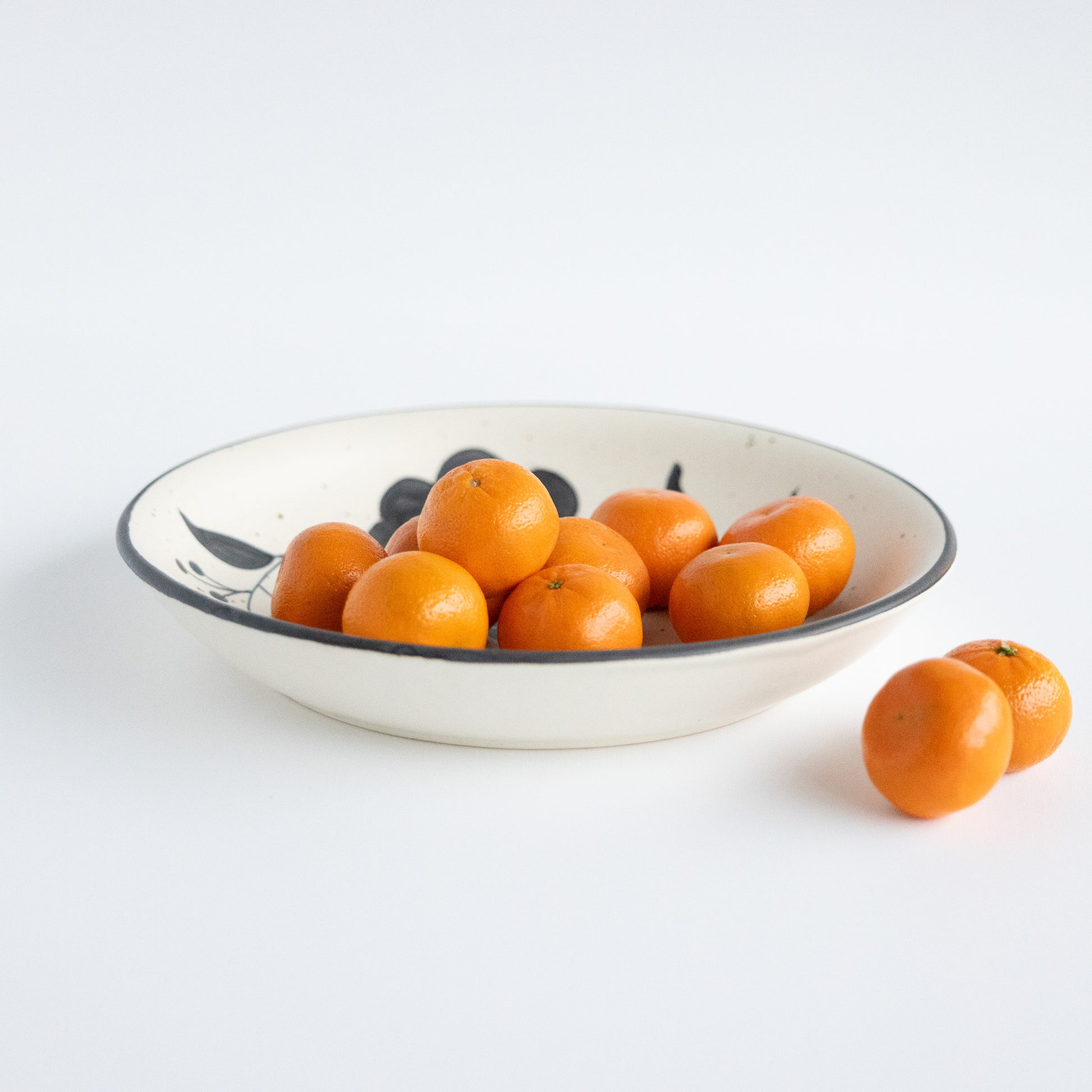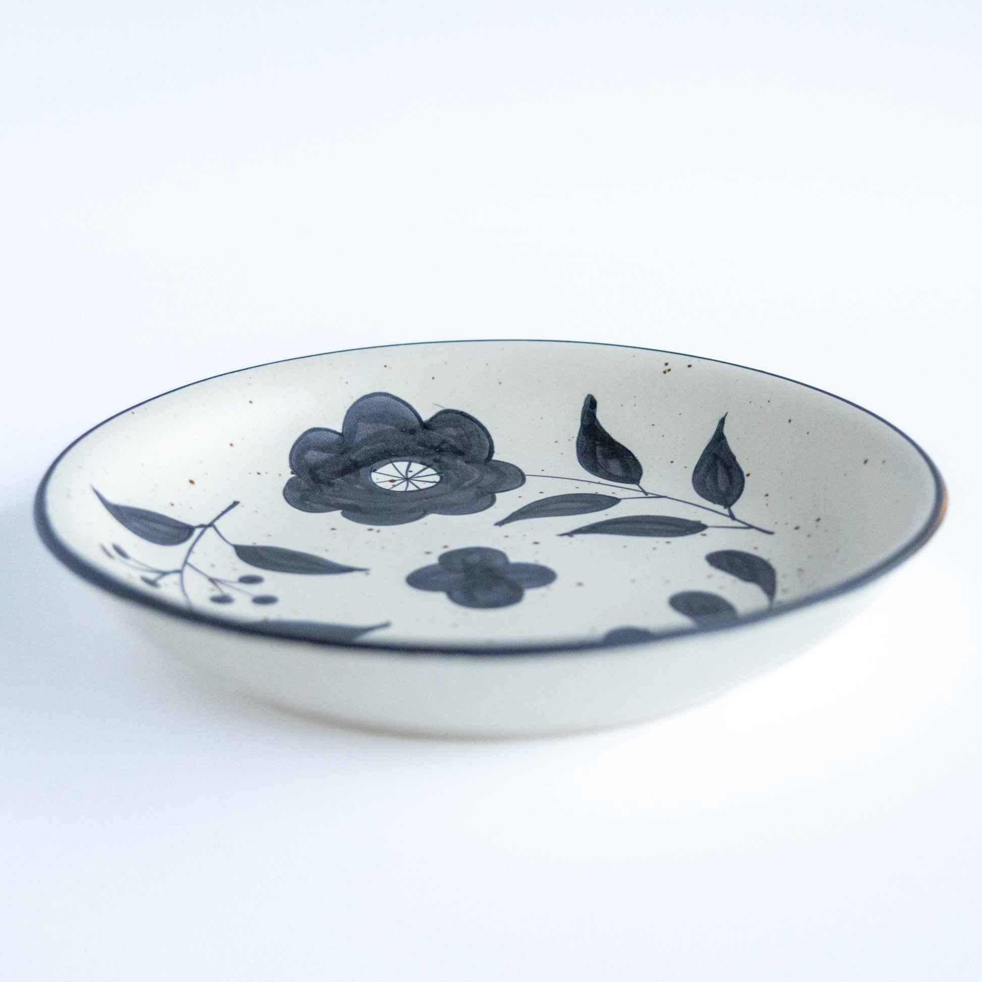Introducing the Black Painted Floral Stoneware Bowl, a sophisticated addition to your kitchenware. Featuring a chic Black and Cream Speckled design, this 14" round bowl is crafted from durable stoneware, adding both style and functionality to your dining experience.