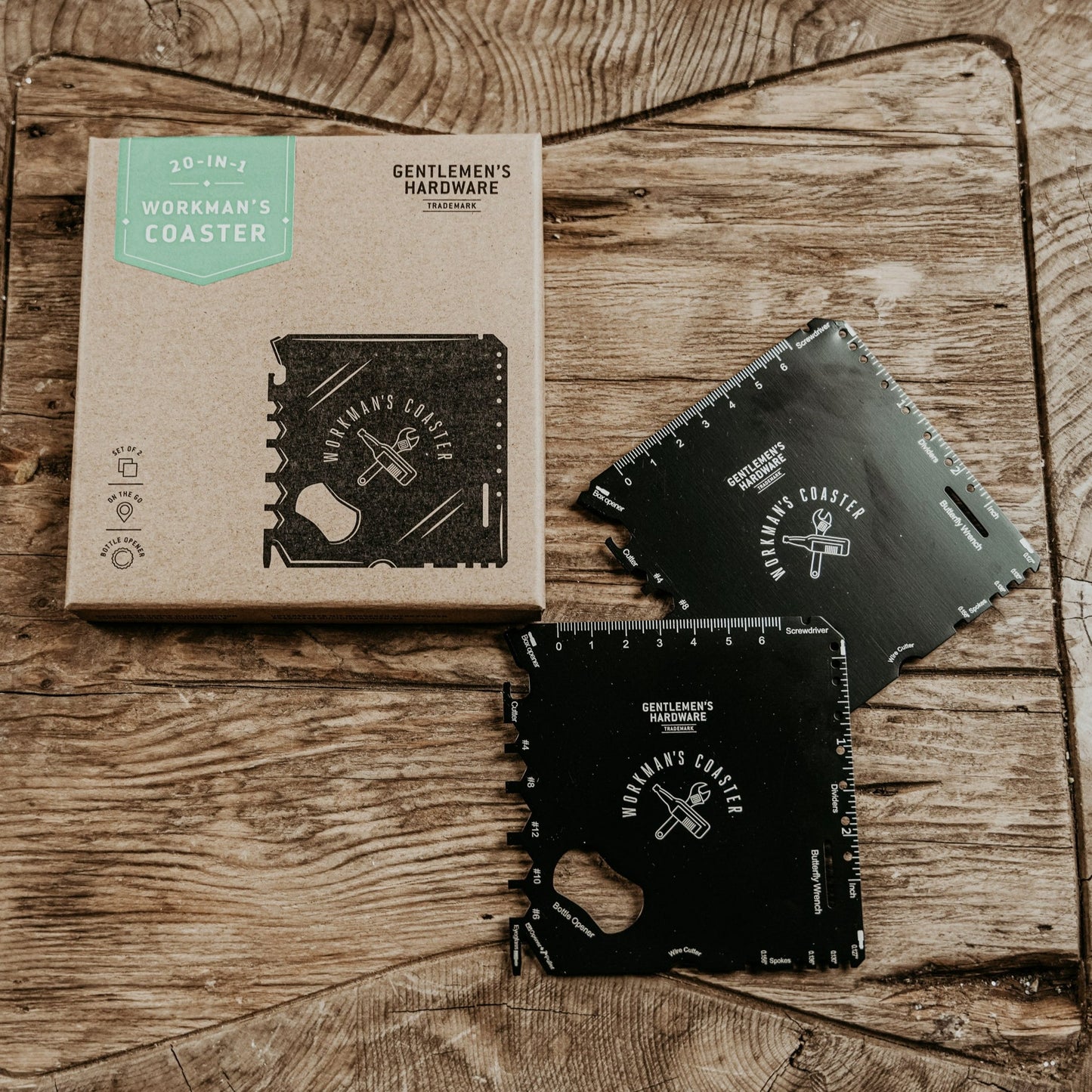 Do you need a great MacGyver kind of coaster? This stainless set of 2 coasters can keep the drink rings off the table while featuring a selection of 20 useful tools. Makes the perfect gift for the workman in your life.
