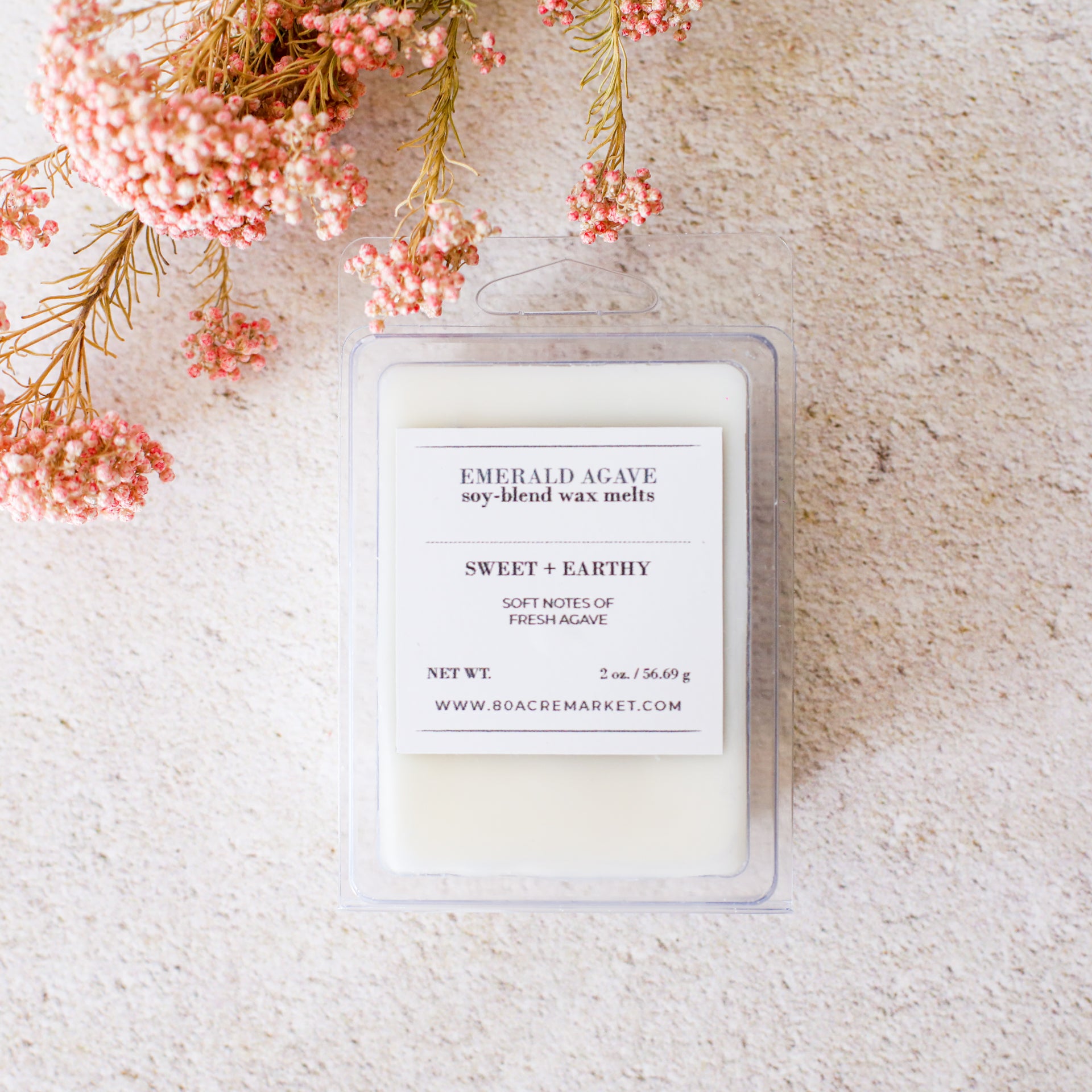 Emerald Agave has a sweet mix of sea moss, melon, agave, passionflower, acai, aloe, coconut bark, teakwood, grass, and amber.