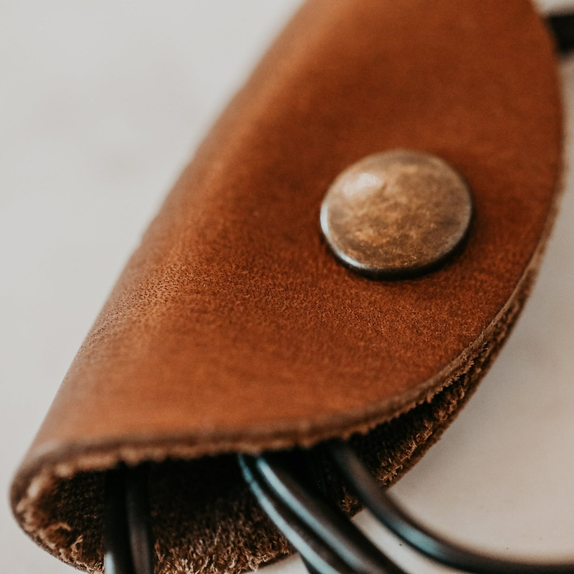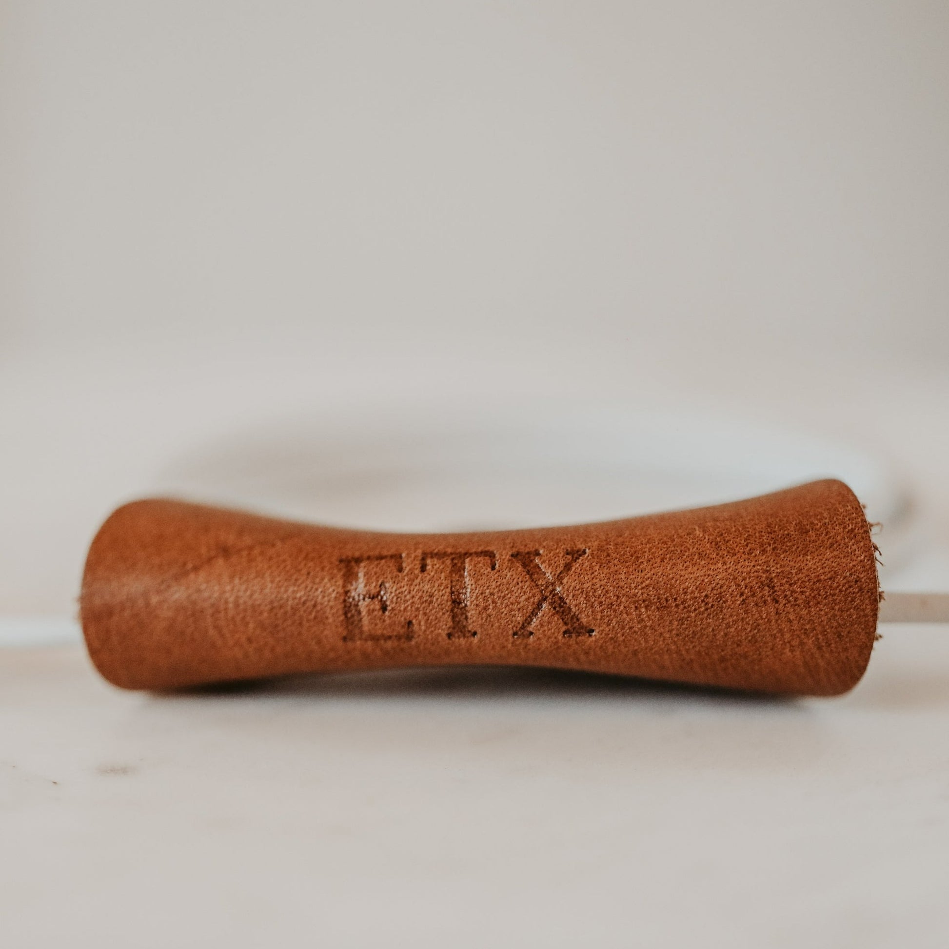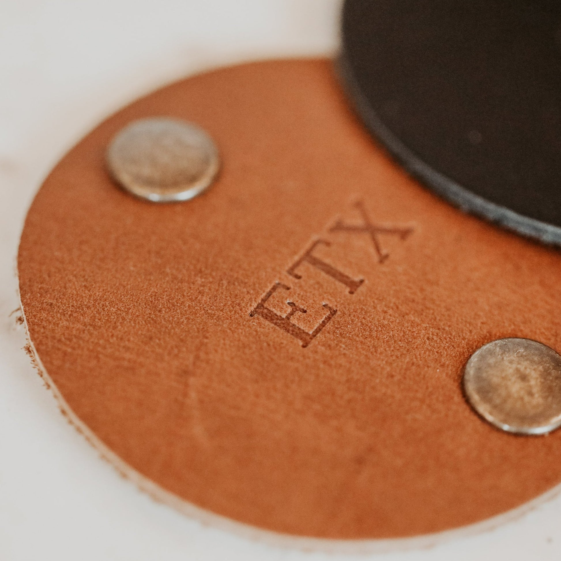 This high-quality, full-grained leather cord taco is the perfect way to organize your cords. With a customized "ETX" embossment, this makes a great gift.