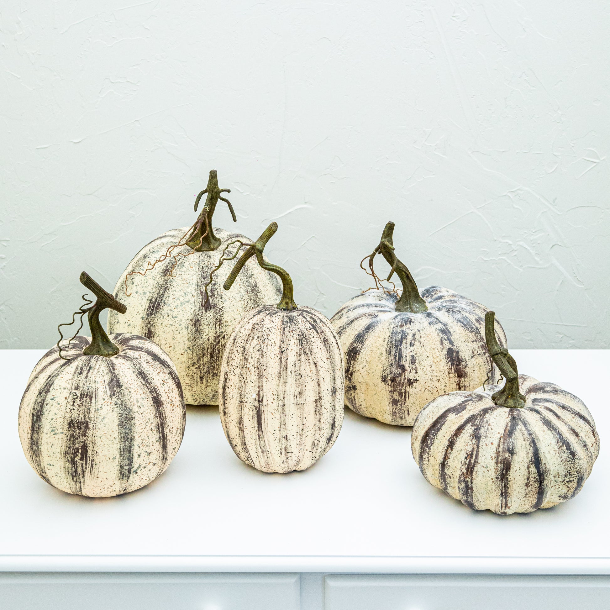 Nothing says "Fall" like pumpkins! These farmhouse pumpkins feature a soft, neutral color palette and are perfect for decorating indoor or outdoor (covered) living spaces.
