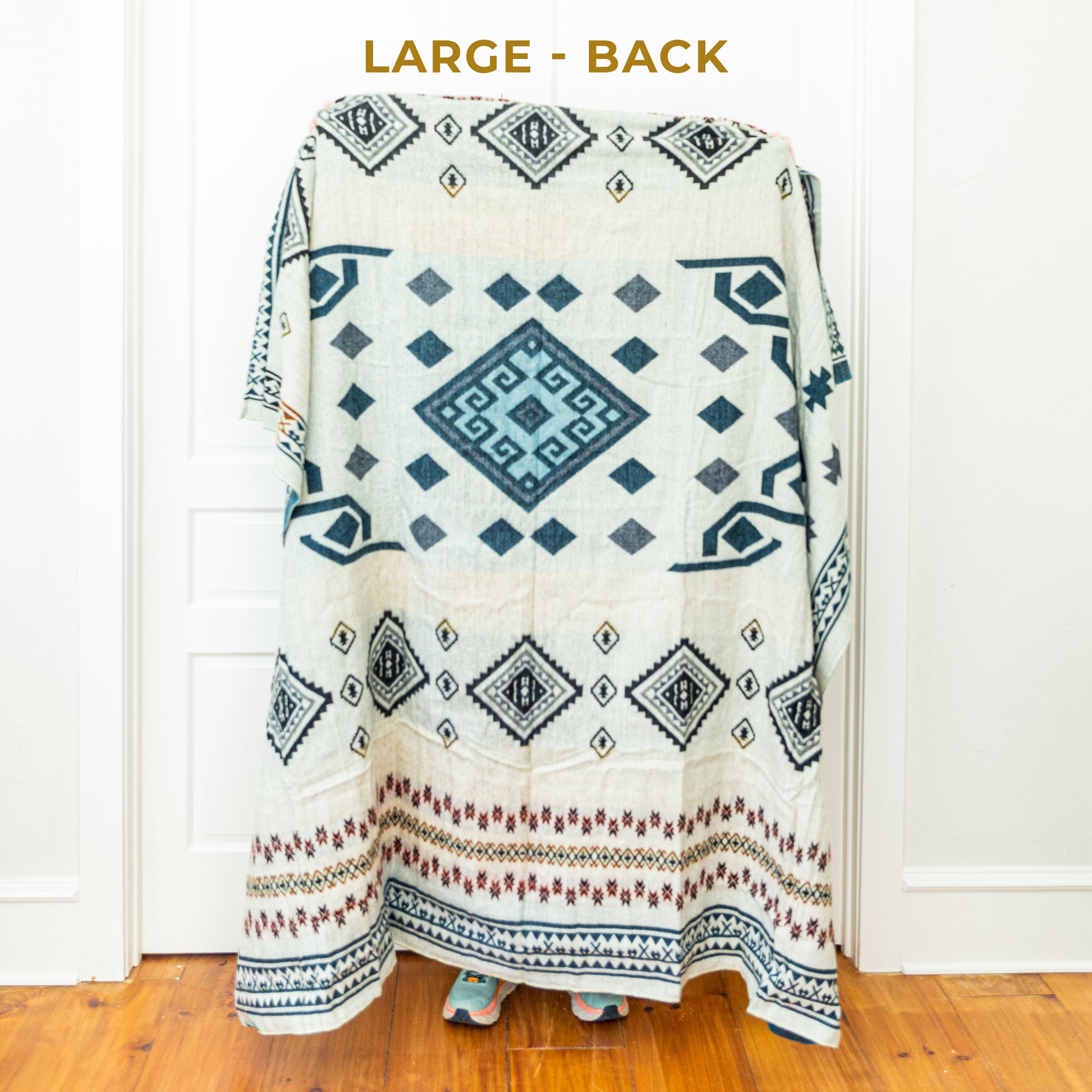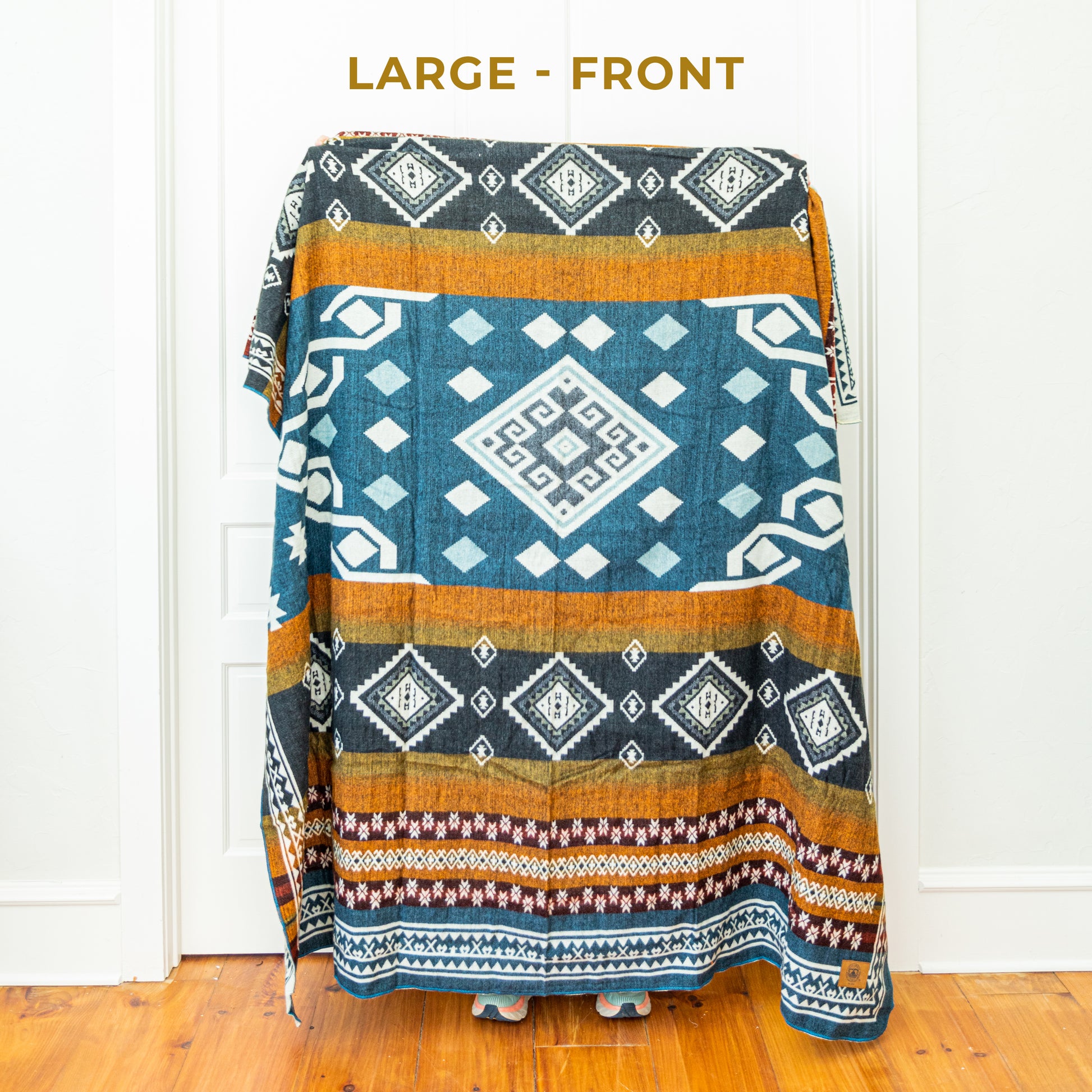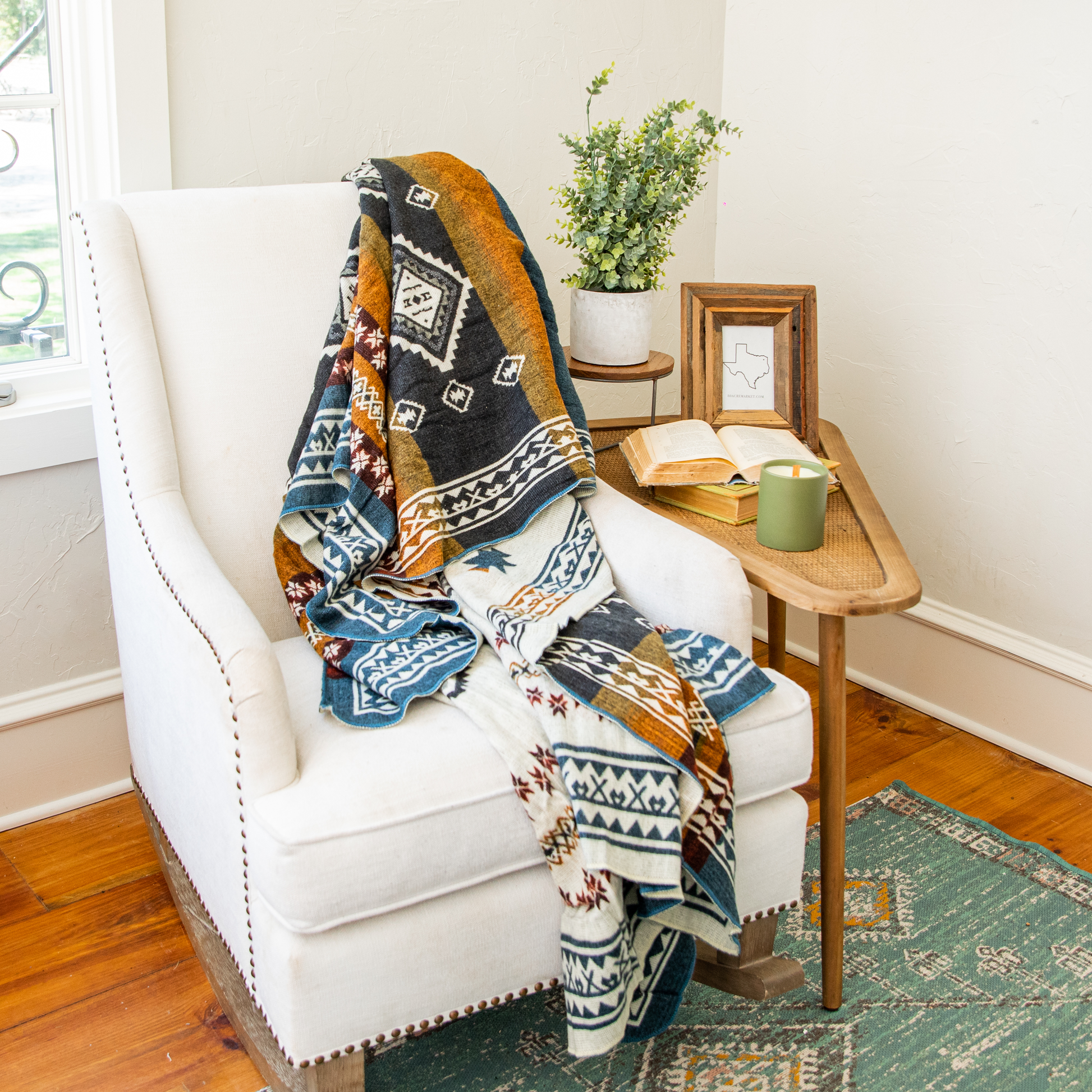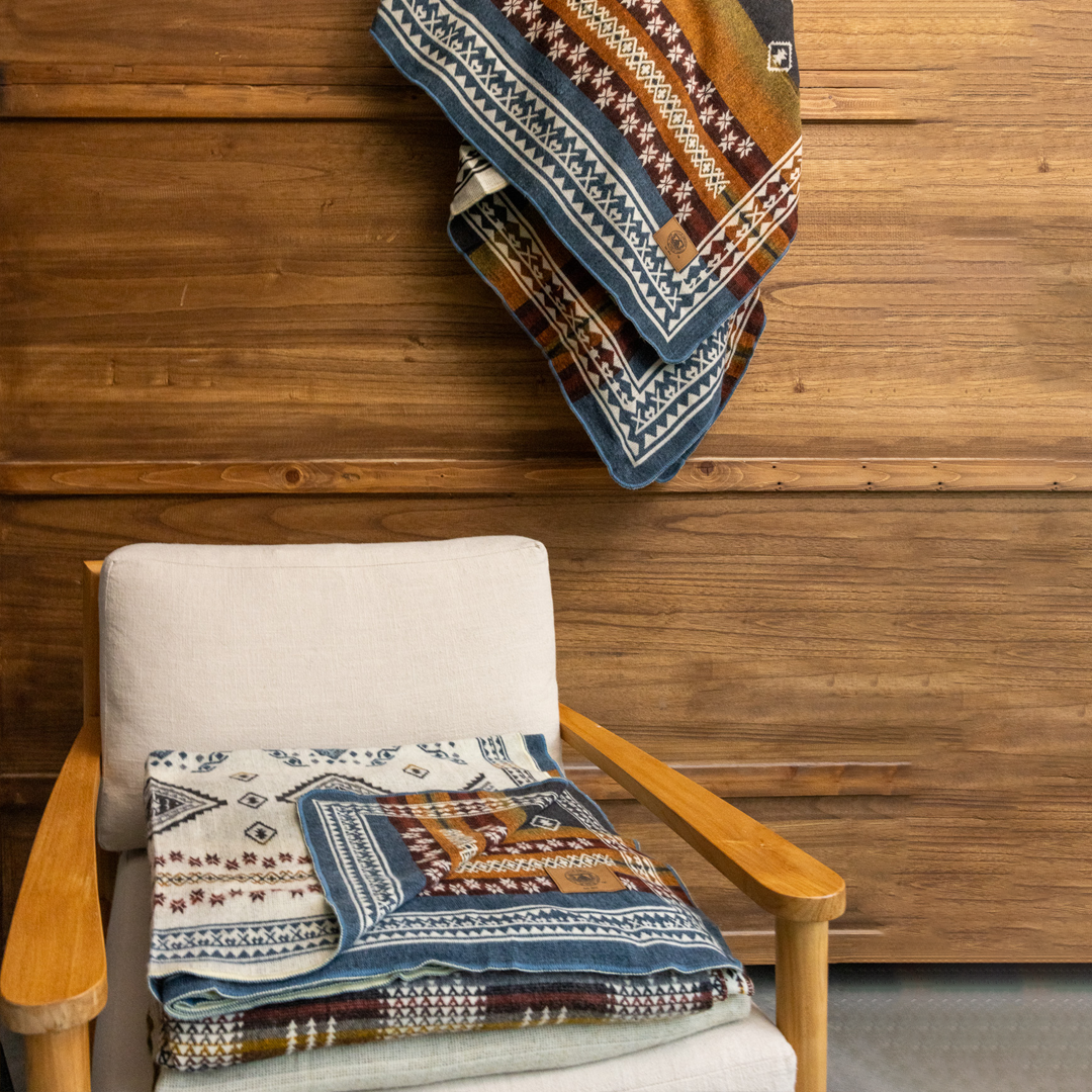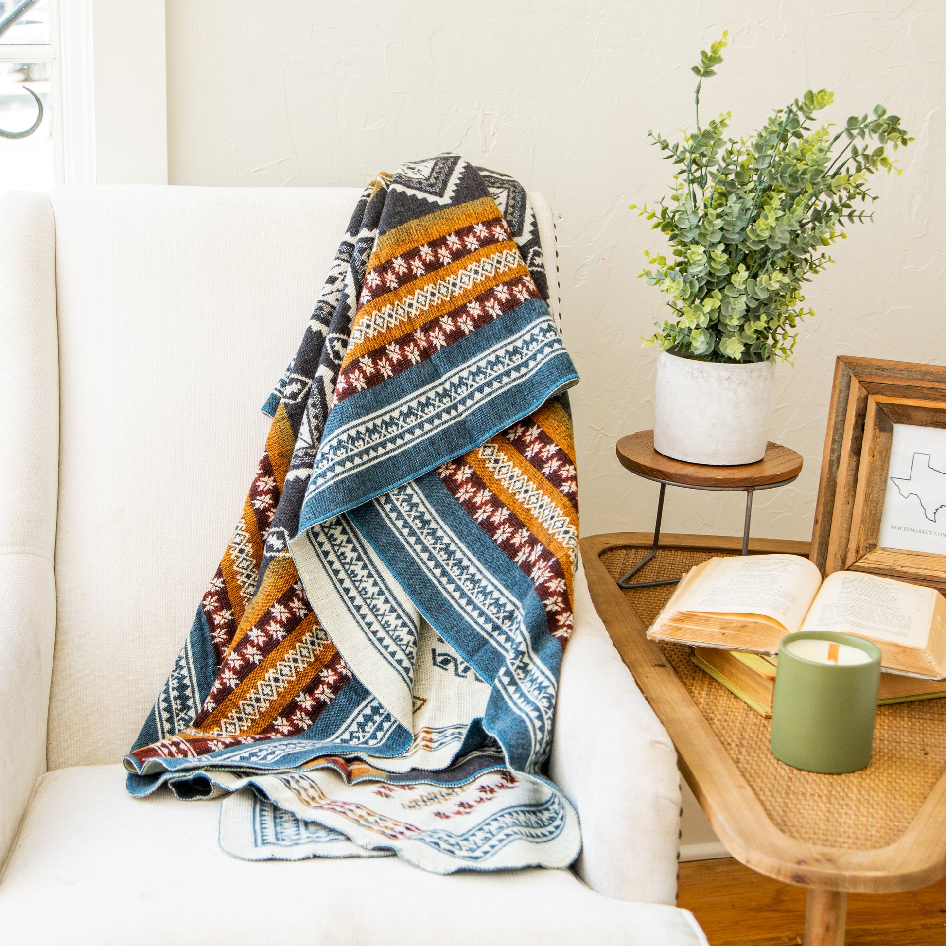 Our beautiful Aztec Blankets are made by an artisan family who has crafted these blankets for generations using traditional and timeless patterns. Made with the perfect blend of alpaca wool and recycled acrylic fibers, these soft and durable blankets are fair trade and environmentally friendly.