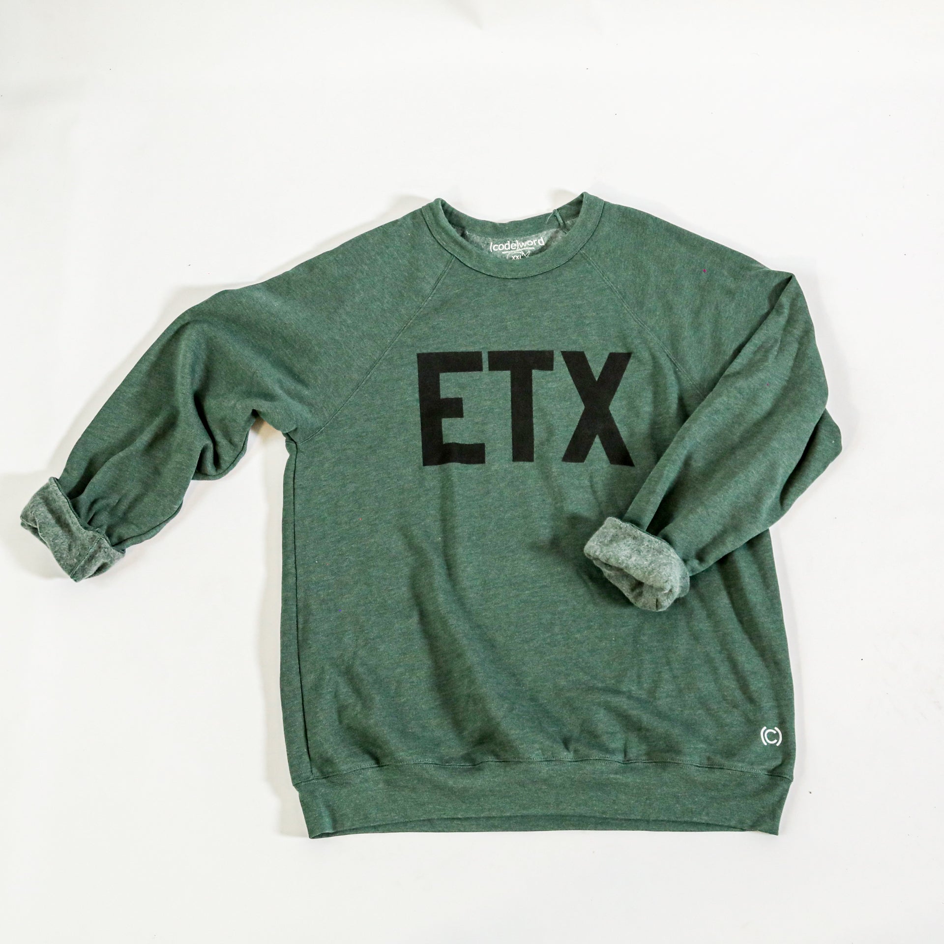 Snuggle into our cozy and super soft 60% cotton, 40% poly-fleece women's ETX sweatshirts in green or dark blue. This is a must-have for cooler weather.