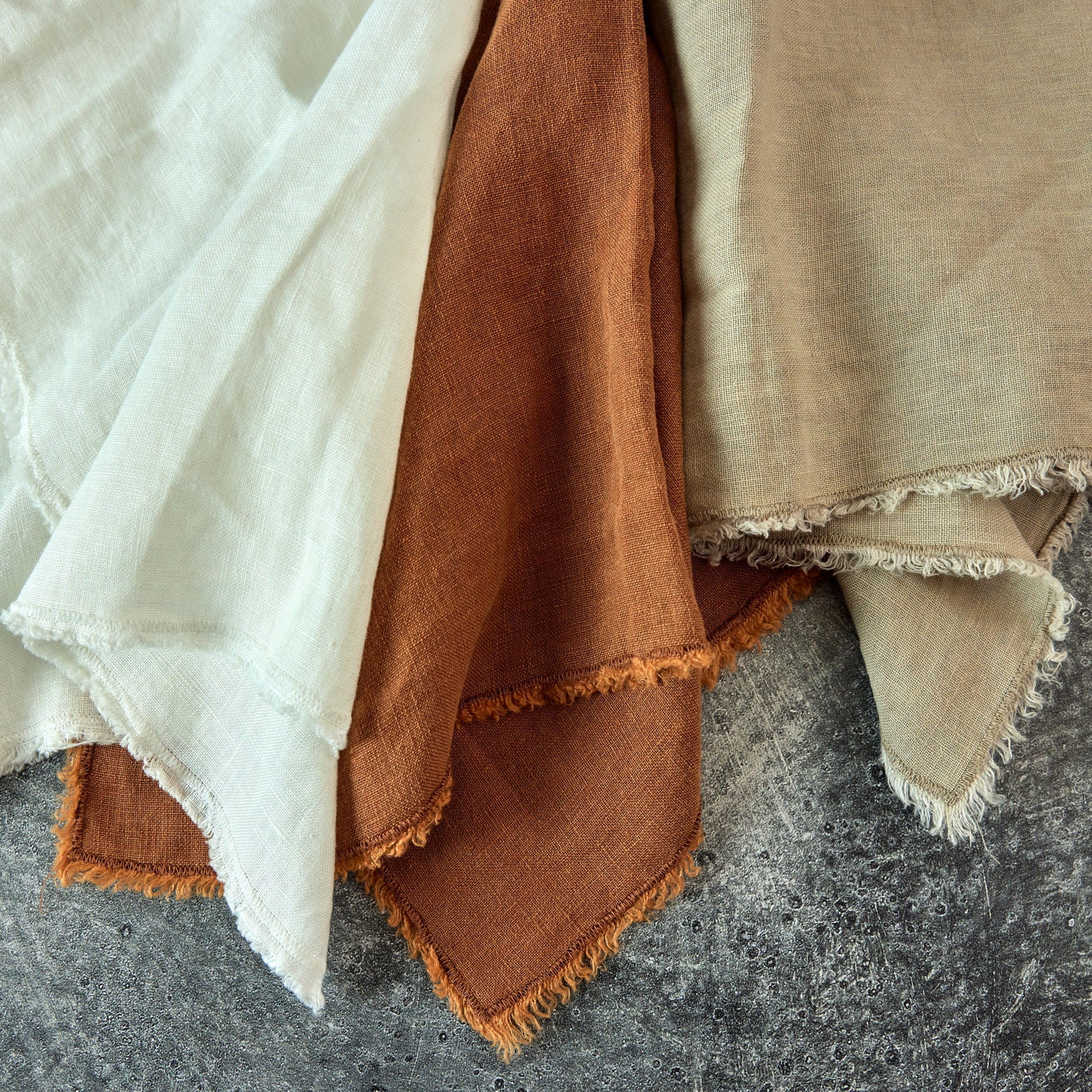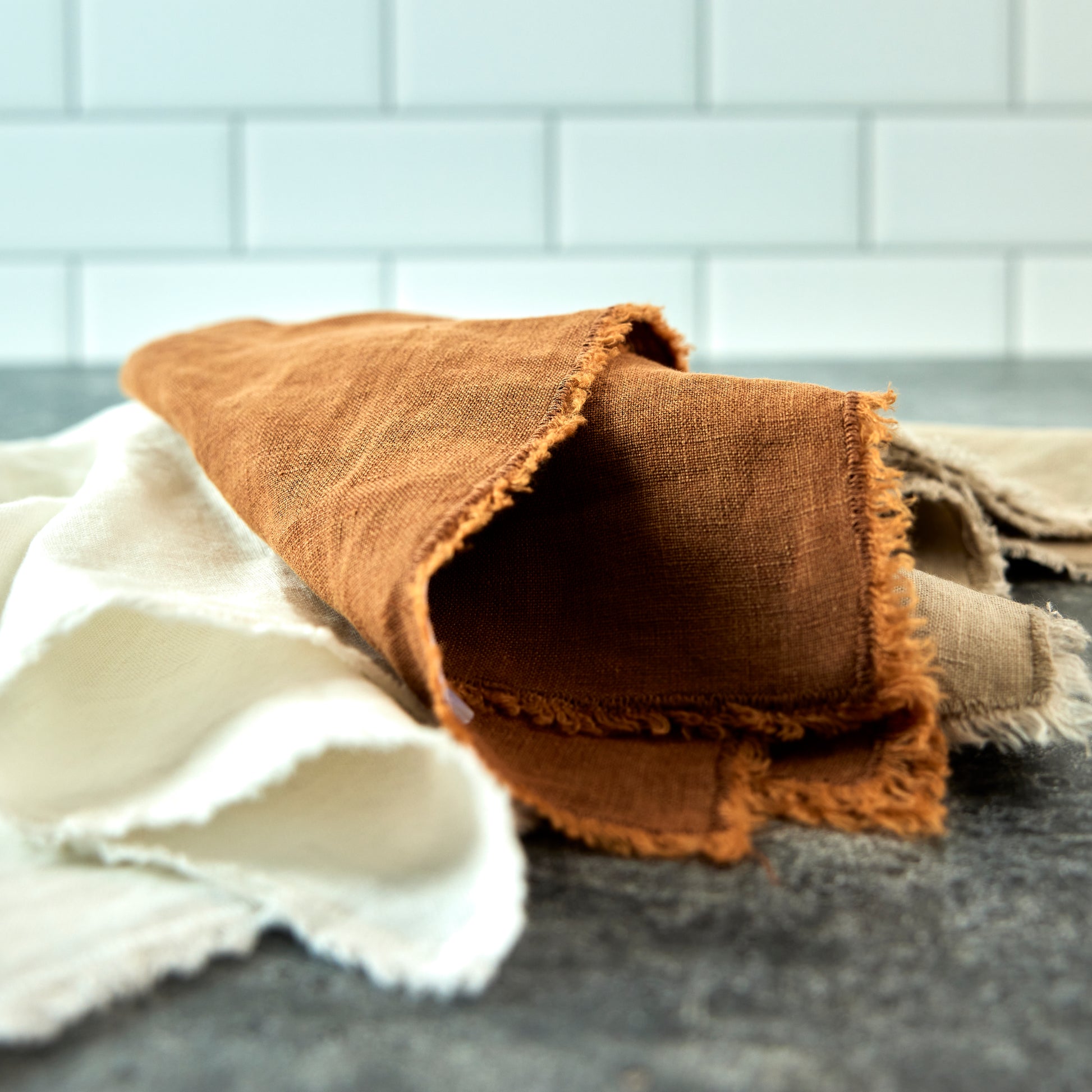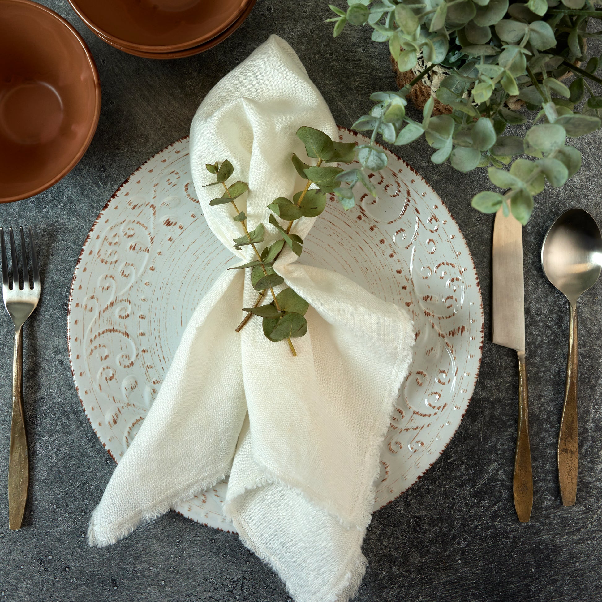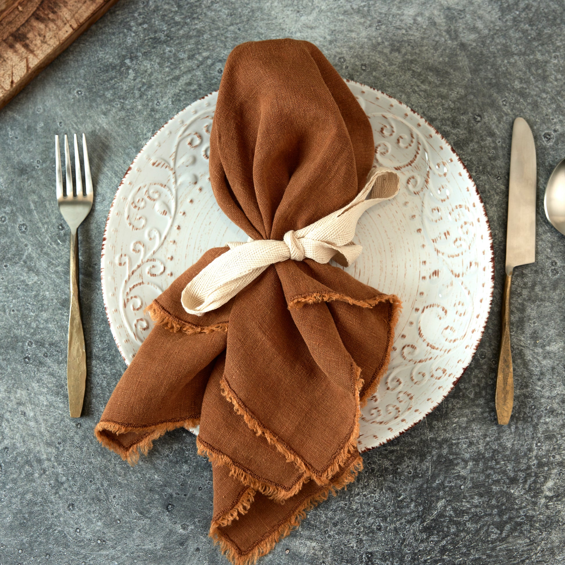 Add a touch of style to your dinner table with these napkins. Features fringe detailing and 100% linen material for an organic and soft feel. Available in three colors, are machine-washable for easy cleanup.
