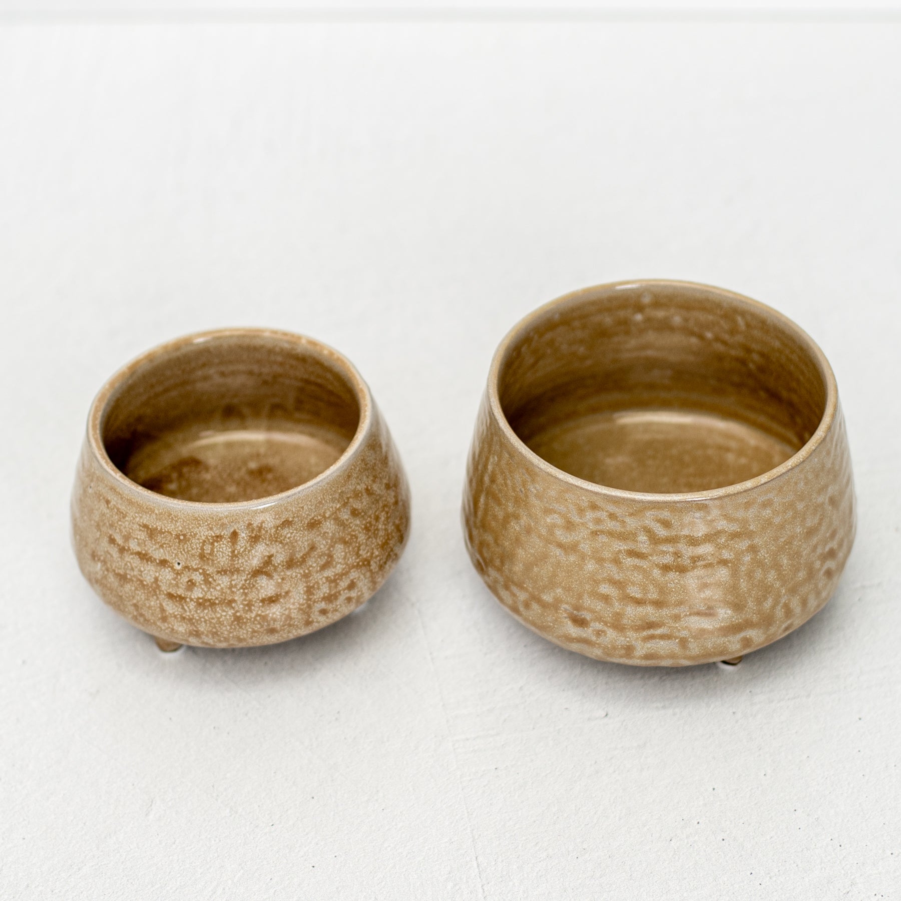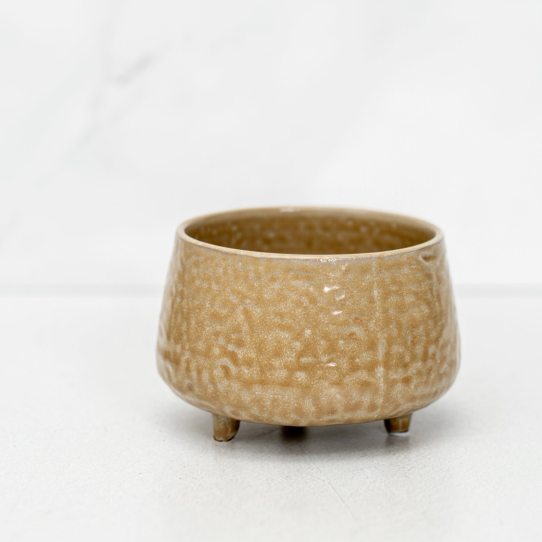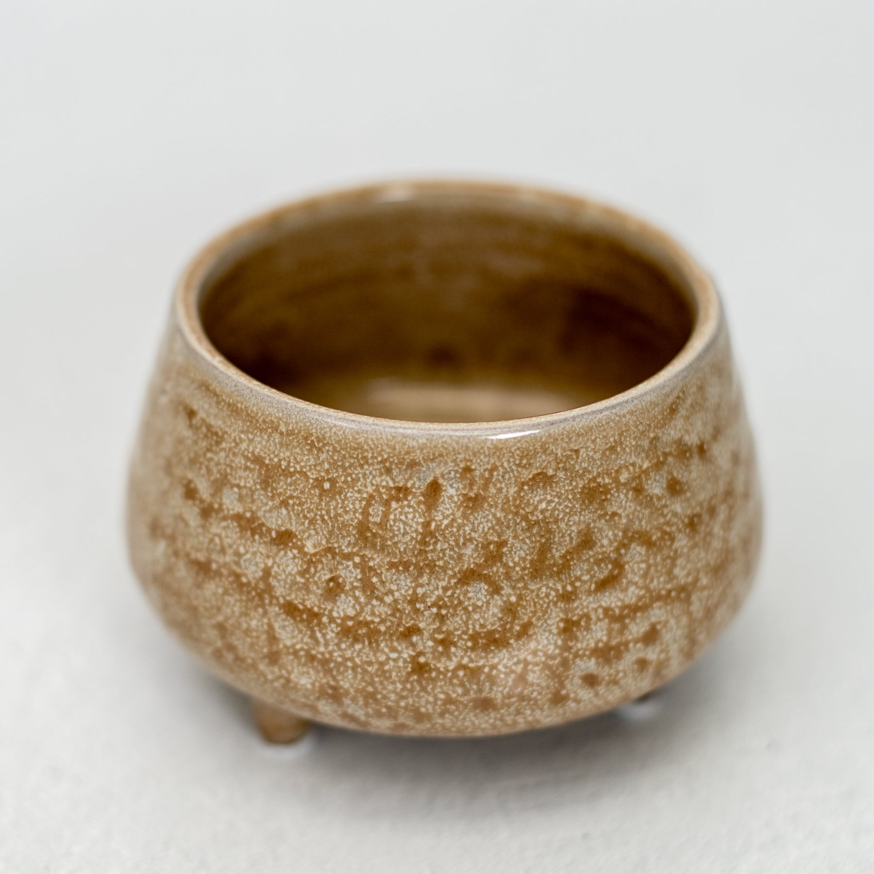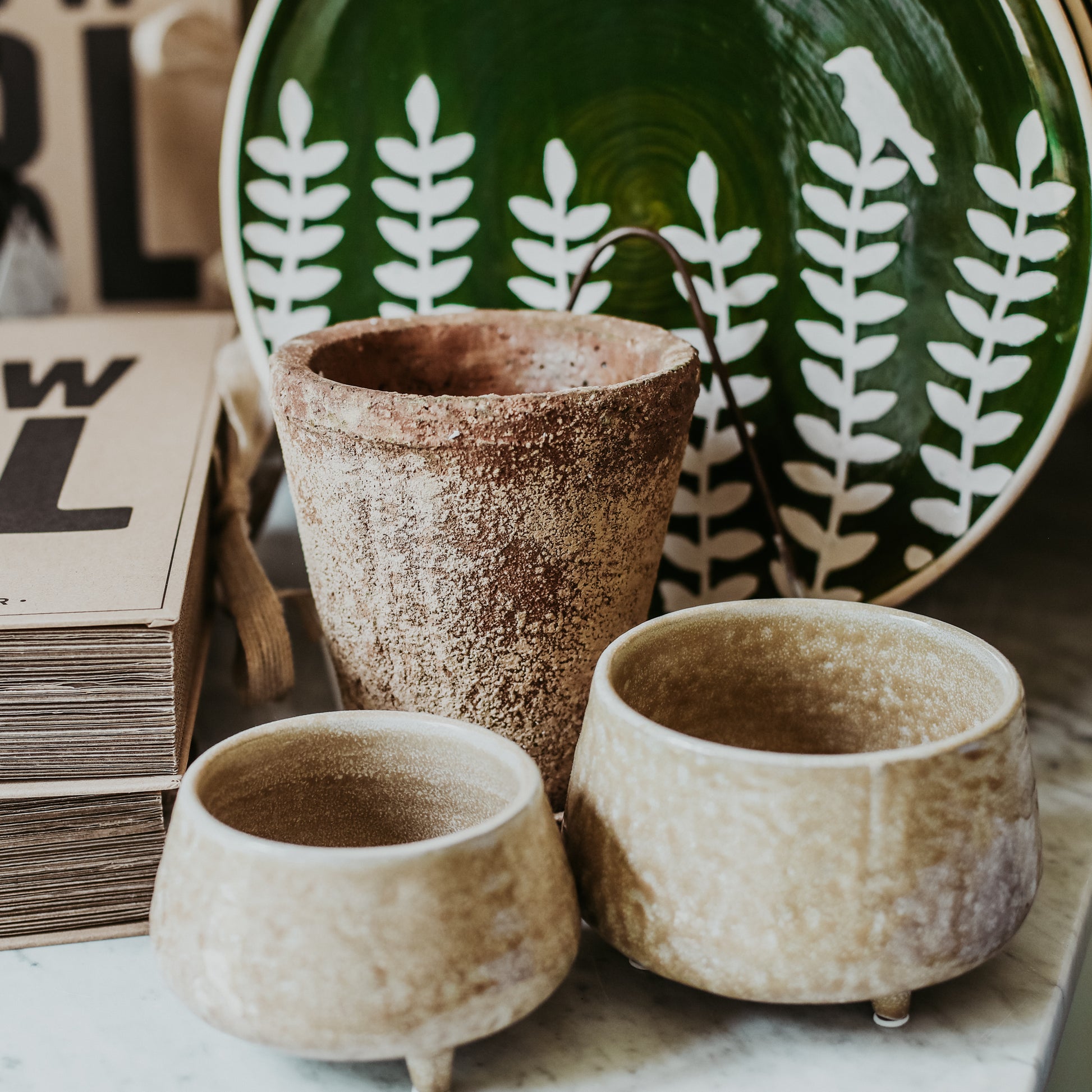 This stoneware planter has a reactive glaze that gives it texture and color variation throughout. Fill with decorative flowers or greenery to display on a tabletop or shelf.