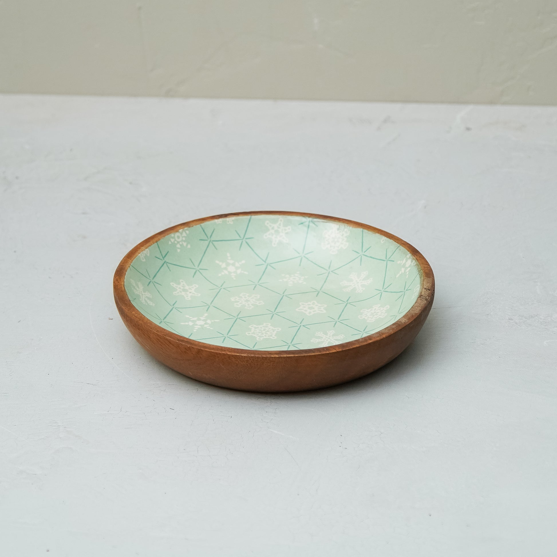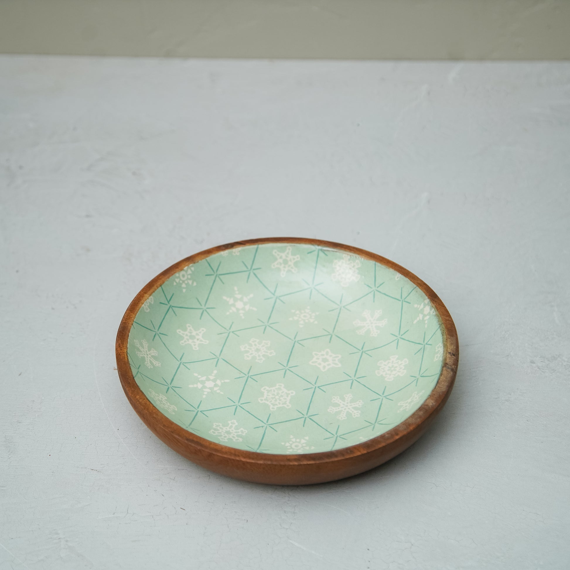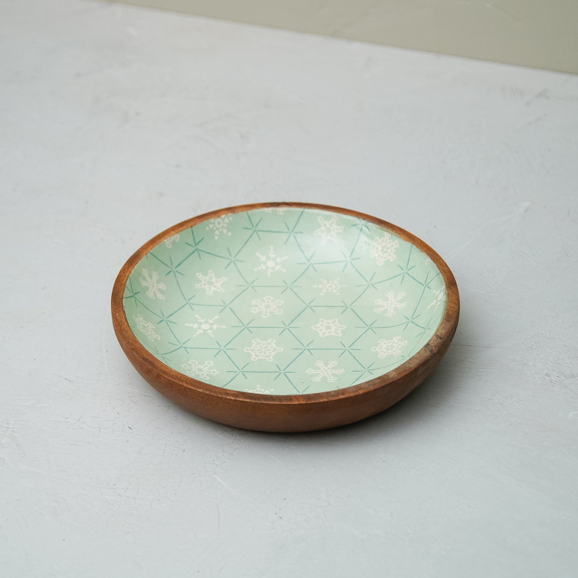 This winter-themed bowl made of mango wood features a classic green and white holiday snowflake pattern. Use all season long as a catch-all, for serving food, or displaying your favorite items in your home.