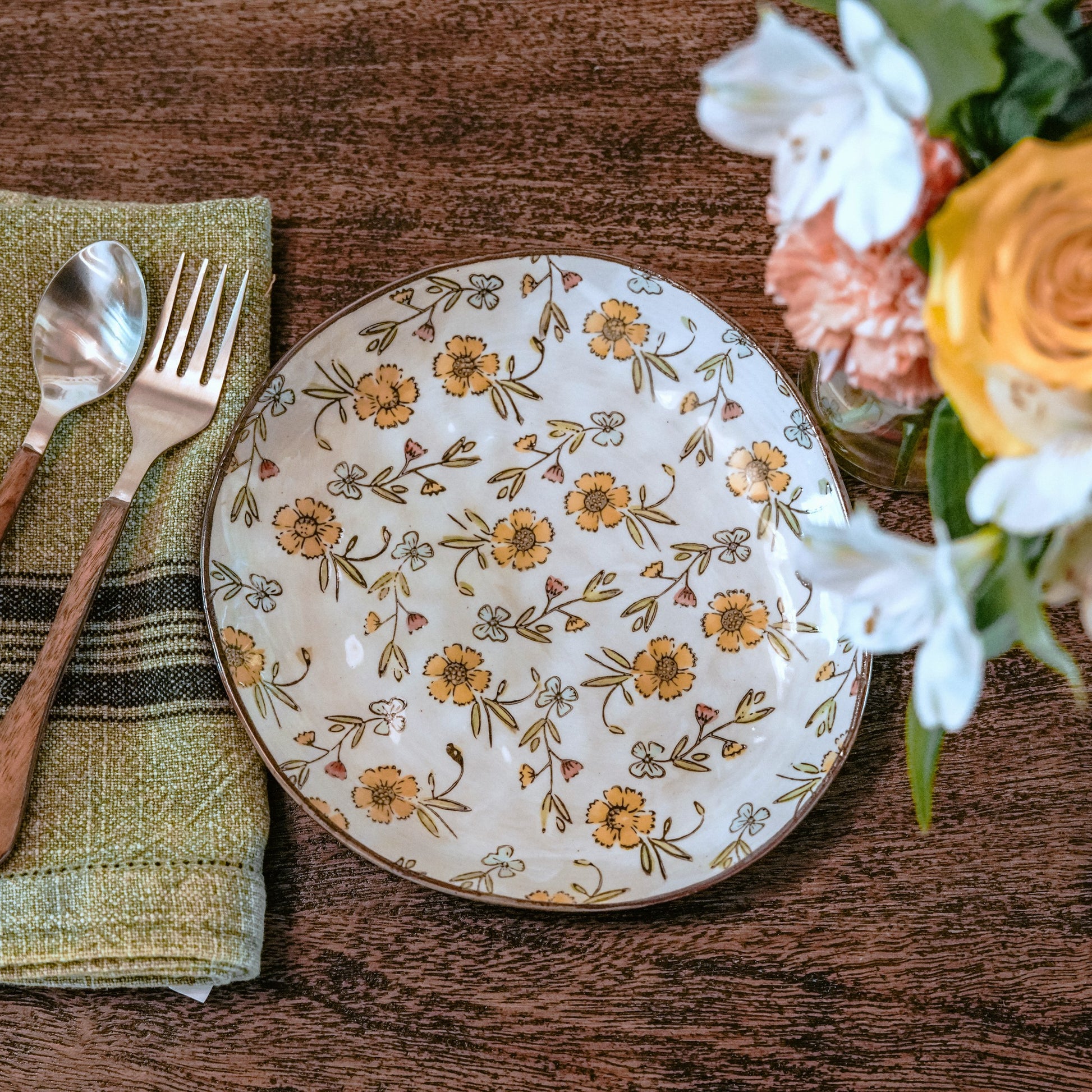 This unique Hand-Painted Floral Plate will add whimsy to your place setting. Mix with any solid-colored dish to add color and pattern to your table.