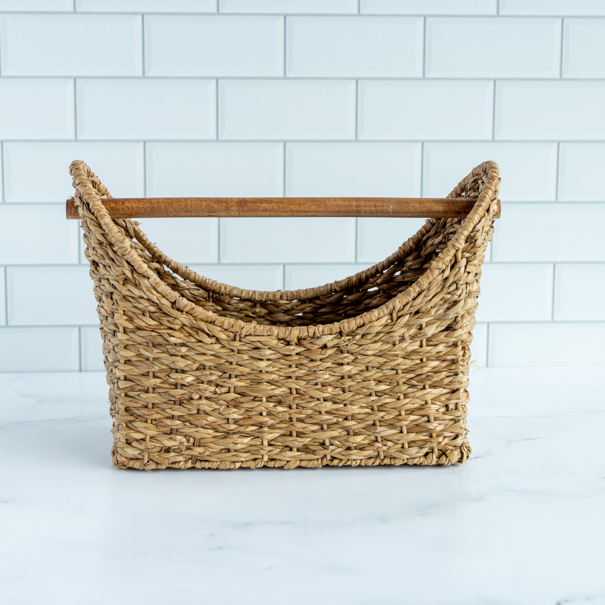 Add a touch of rustic charm to your home with our Hand-Woven Basket. Expertly crafted with a sturdy wood handle, this basket is perfect for storing and organizing everyday items. Embrace the natural handmade beauty and functionality of this unique piece.