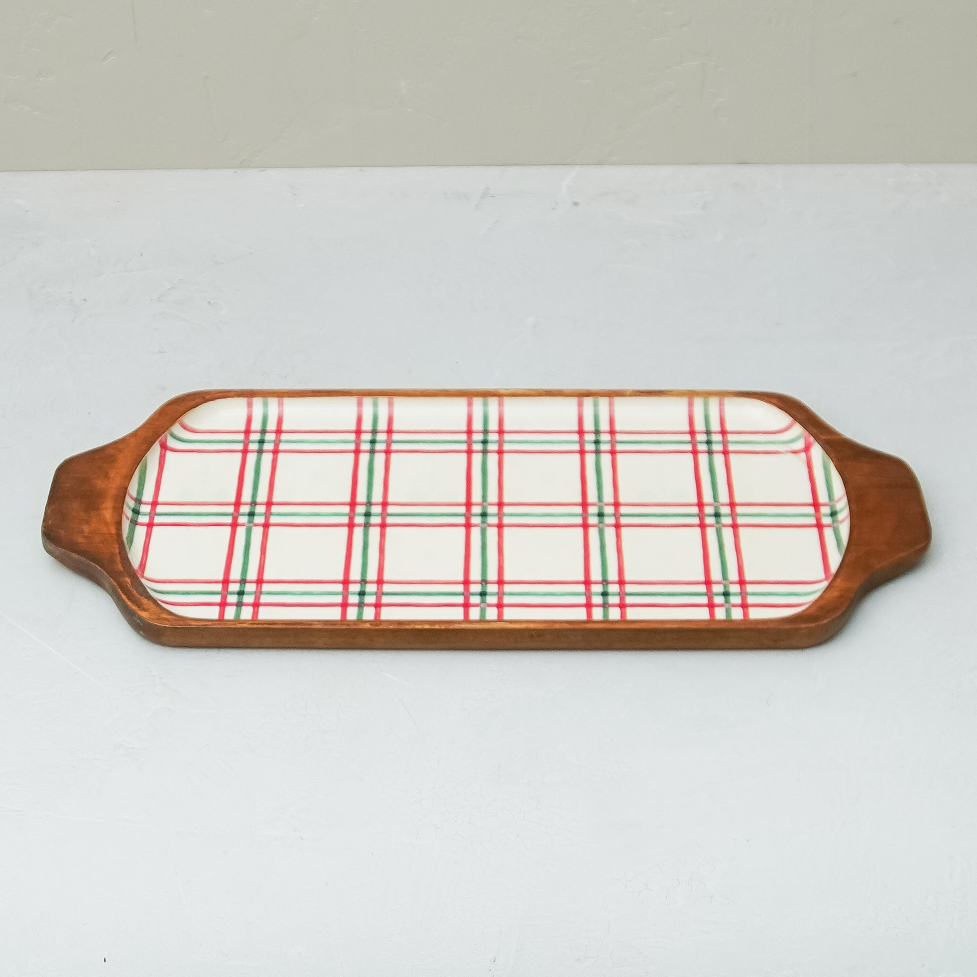 This oval tray made of mango wood features a classic holiday plaid pattern and is great for entertaining and displaying your favorite foods or used as decorative piece in your home.