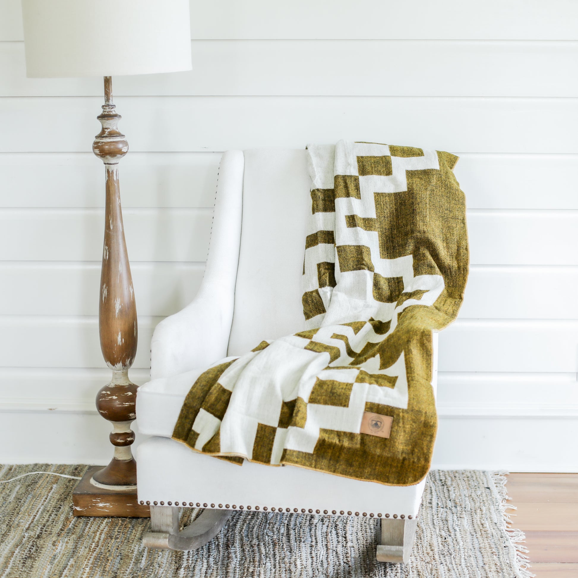 Our beautiful Aztec Blankets are made by an artisan family who has crafted these blankets for generations using traditional and timeless patterns. Made with the perfect blend of alpaca wool and recycled acrylic fibers, these soft and durable blankets are fair trade and environmentally friendly.