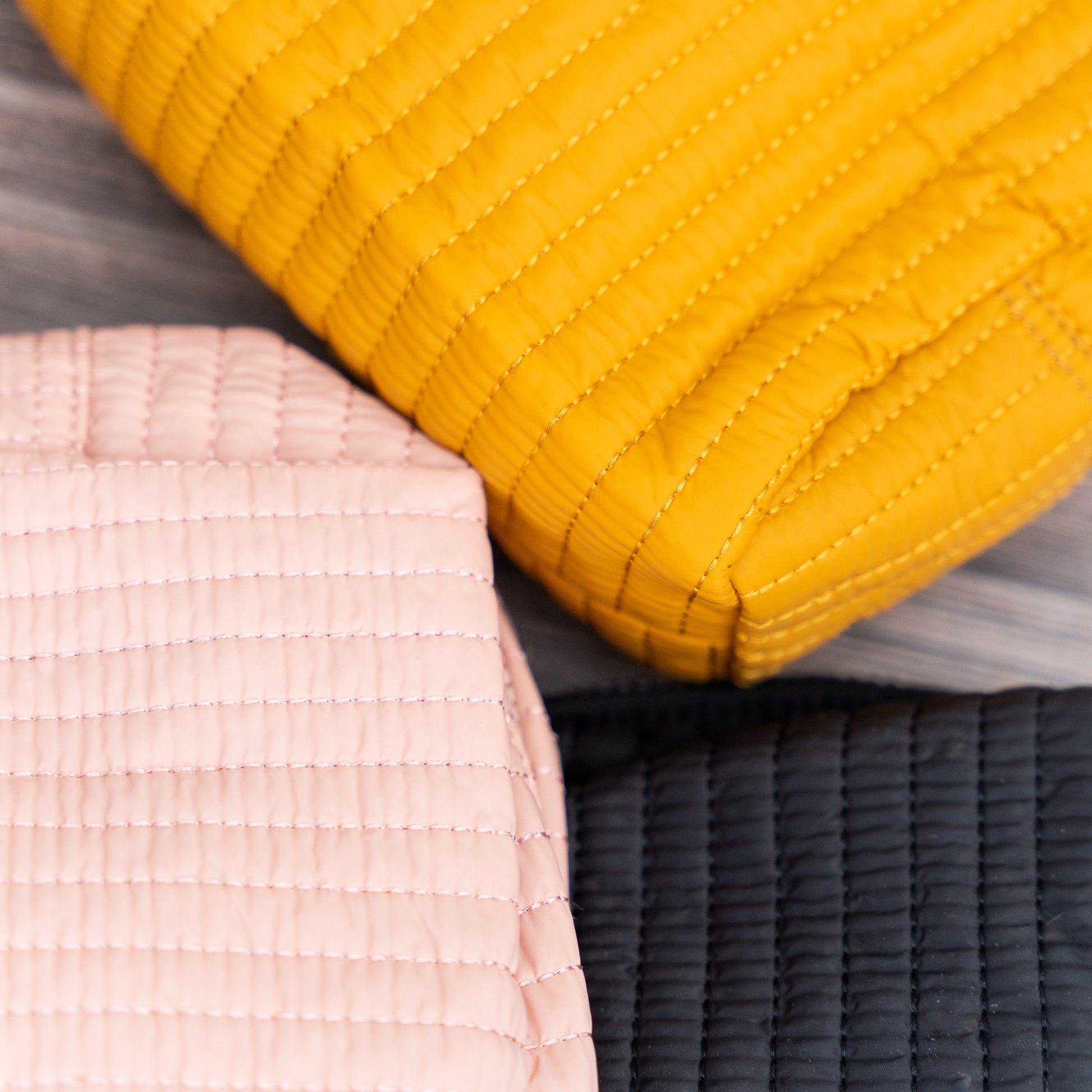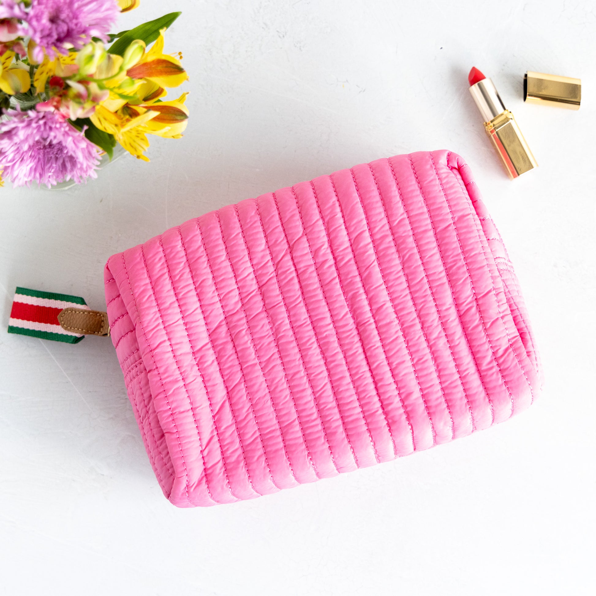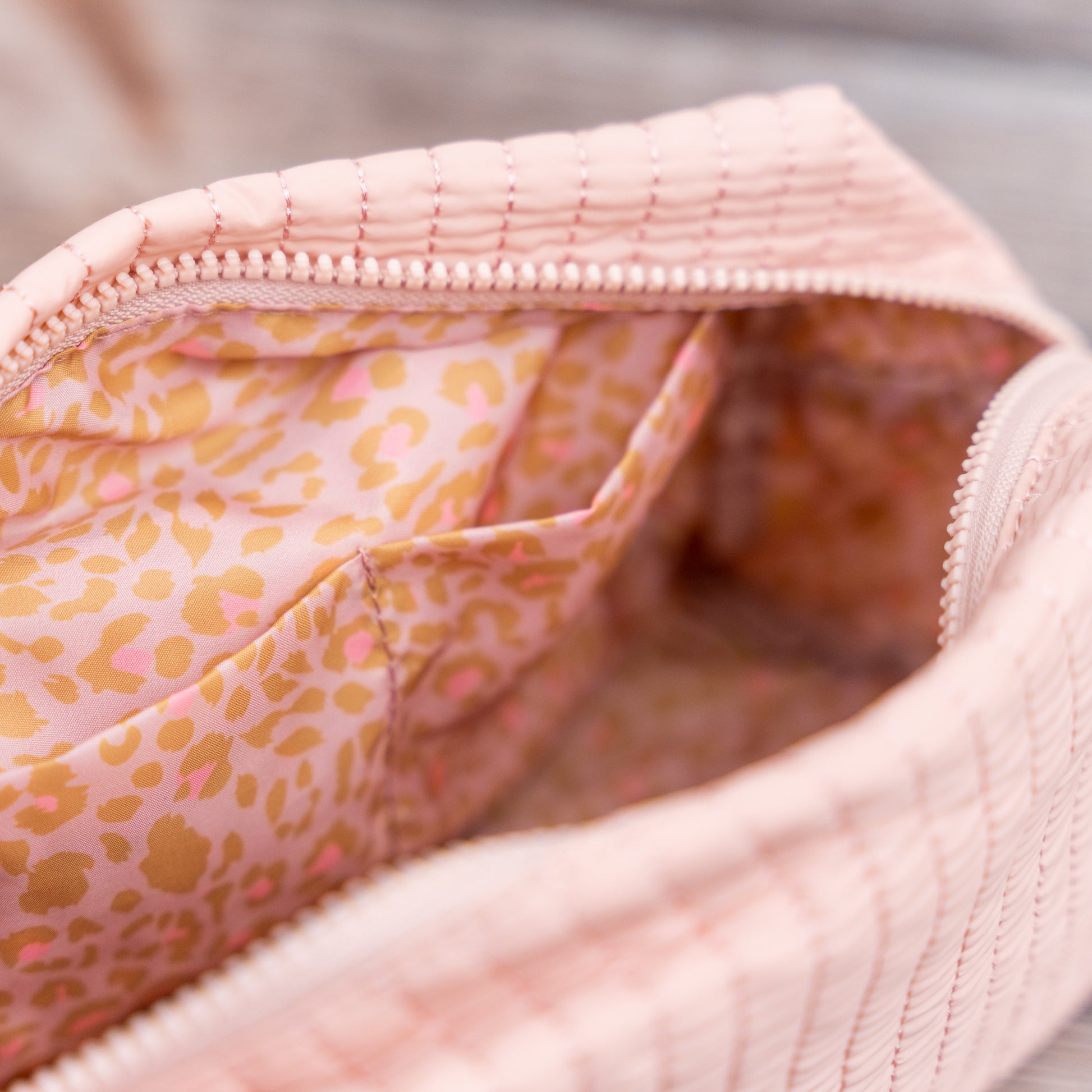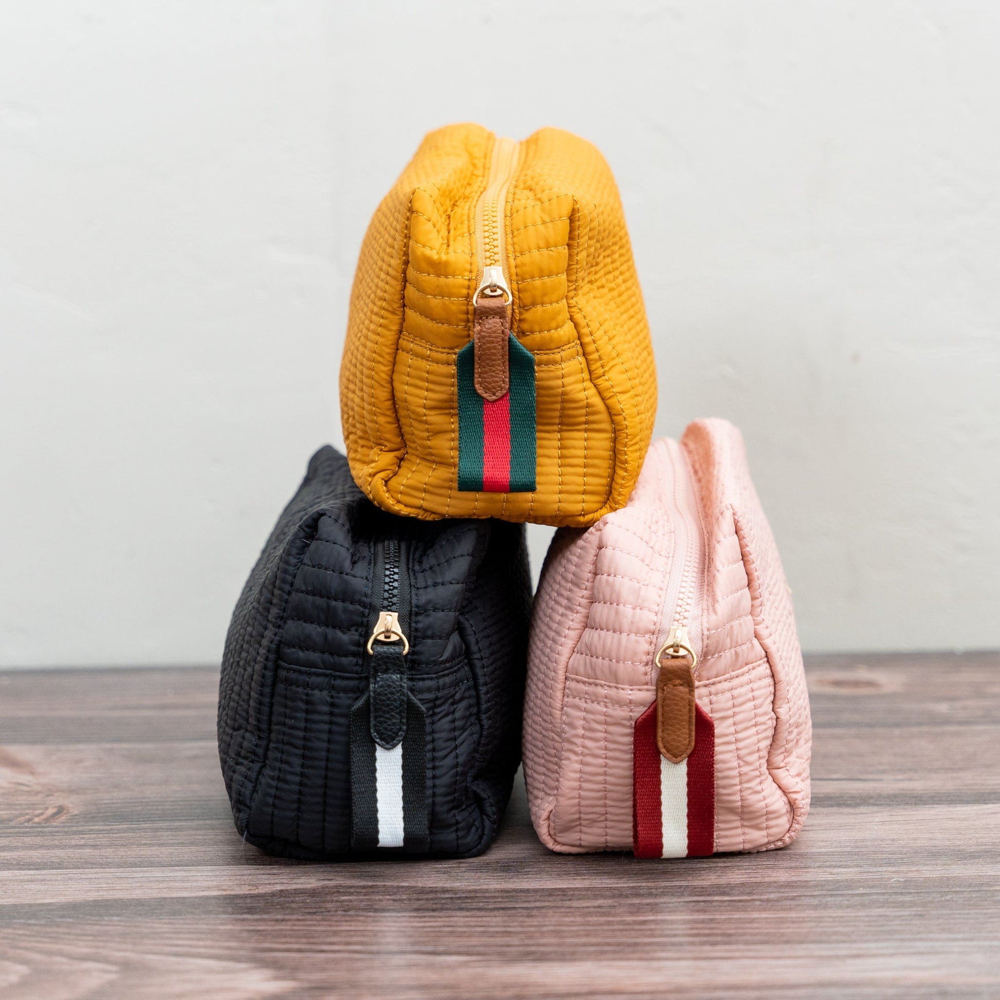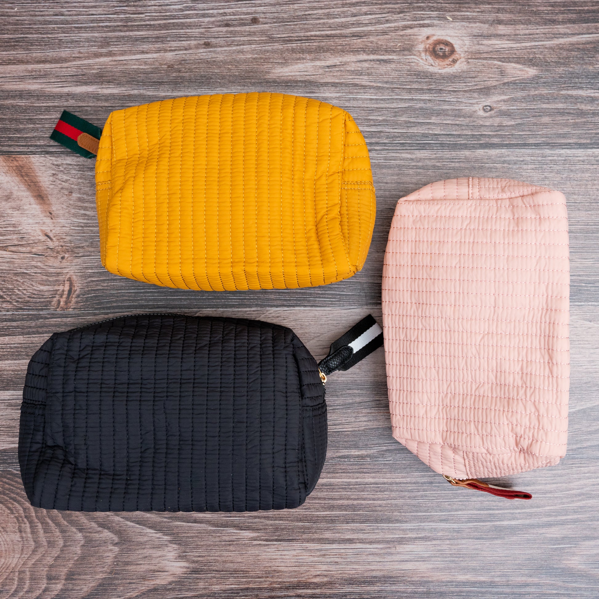 This large cosmetic pouch would make the best on-the-go lifestyle bag. Equipped with an inner zip pocket, and 2 inner slip pockets, this bag is perfect for storing your makeup, toiletries, or any odds and ends you may have.
