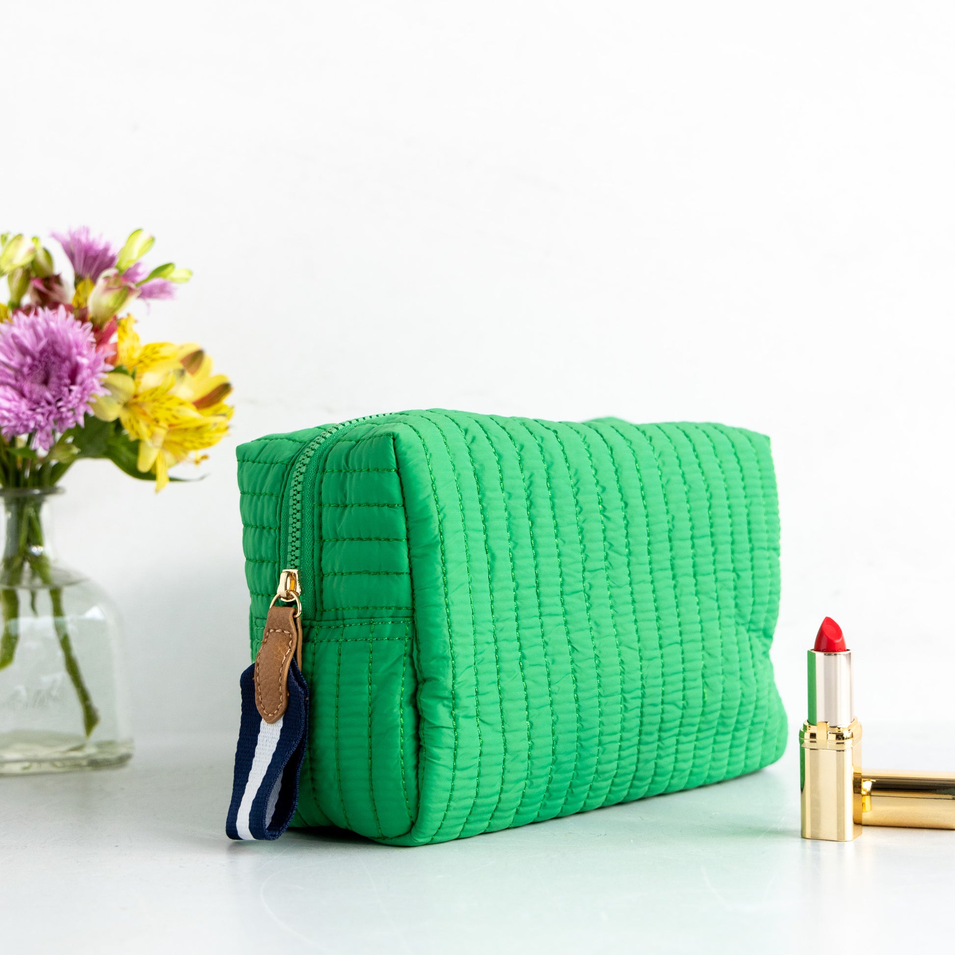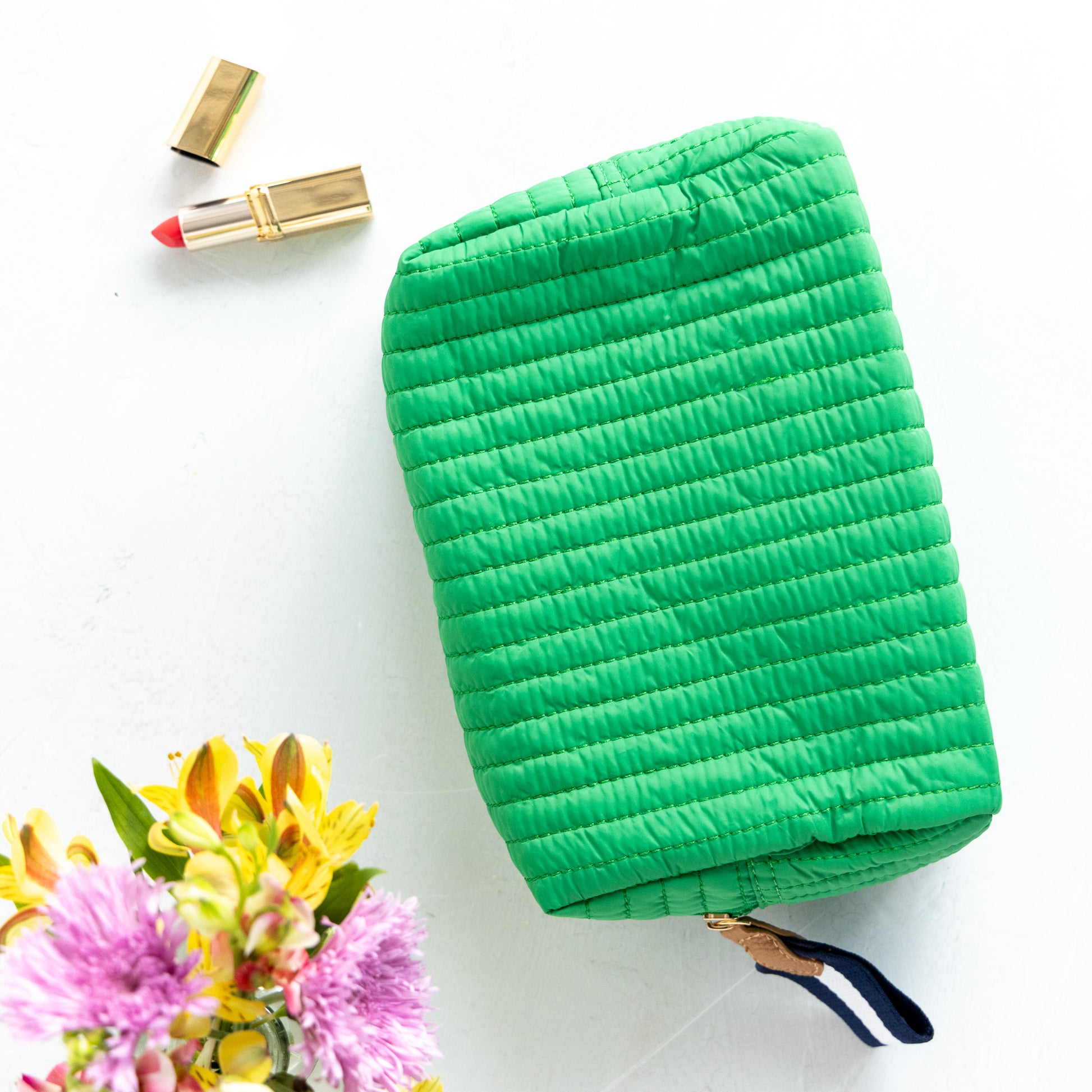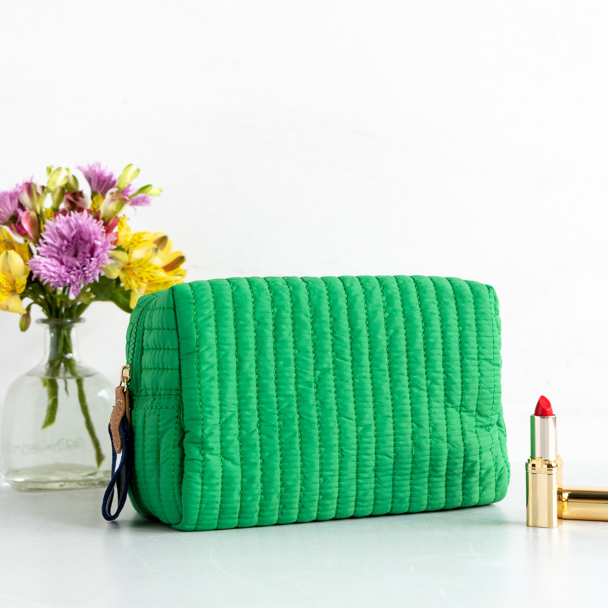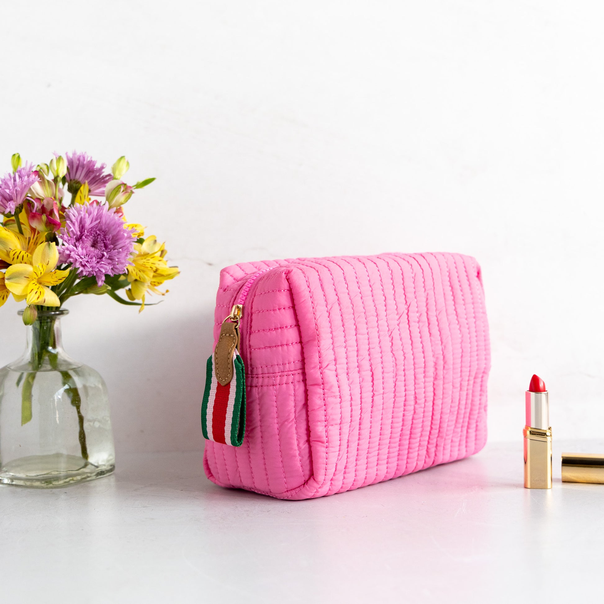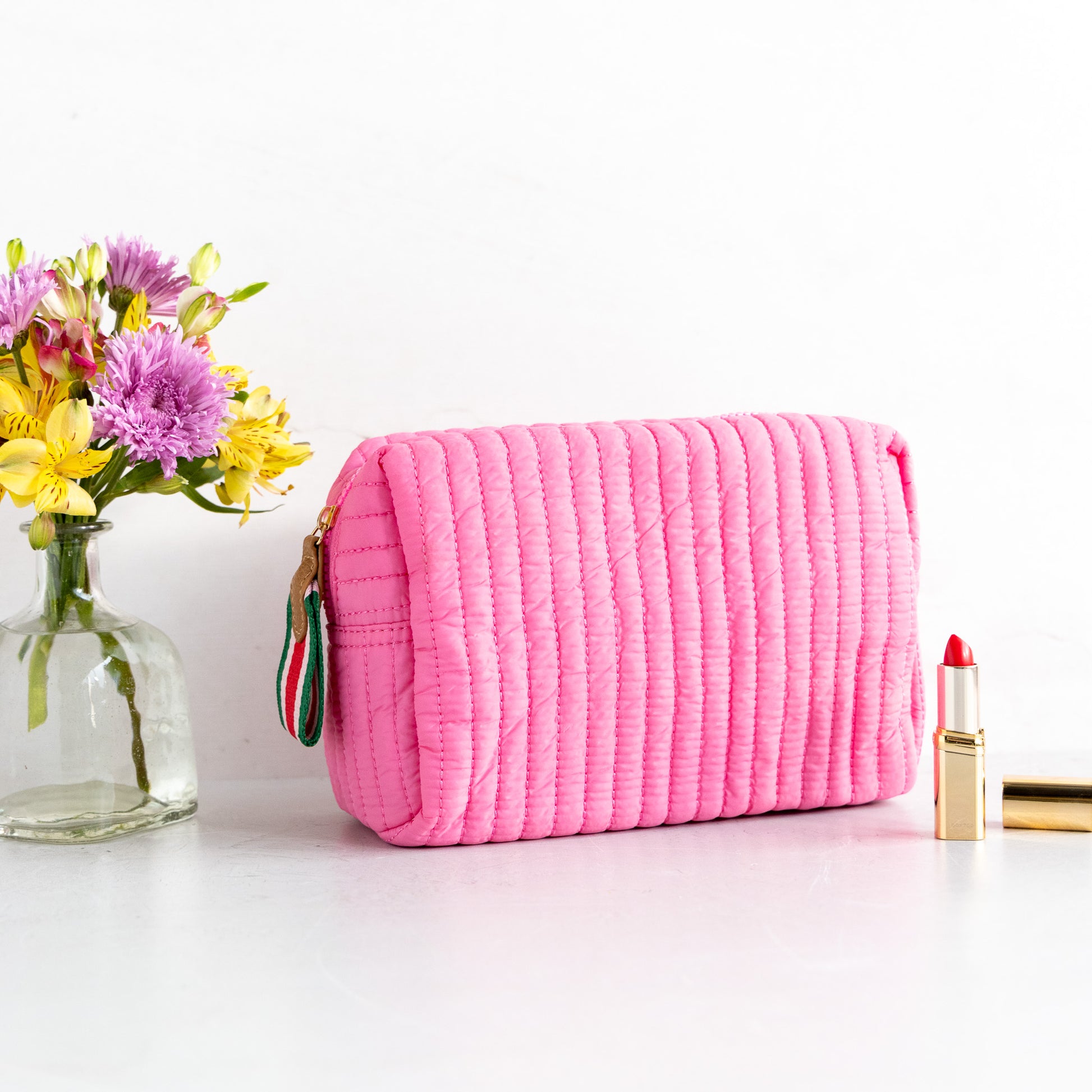 This large cosmetic pouch would make the best on-the-go lifestyle bag. Equipped with an inner zip pocket, and 2 inner slip pockets, this bag is perfect for storing your makeup, toiletries, or any odds and ends you may have.