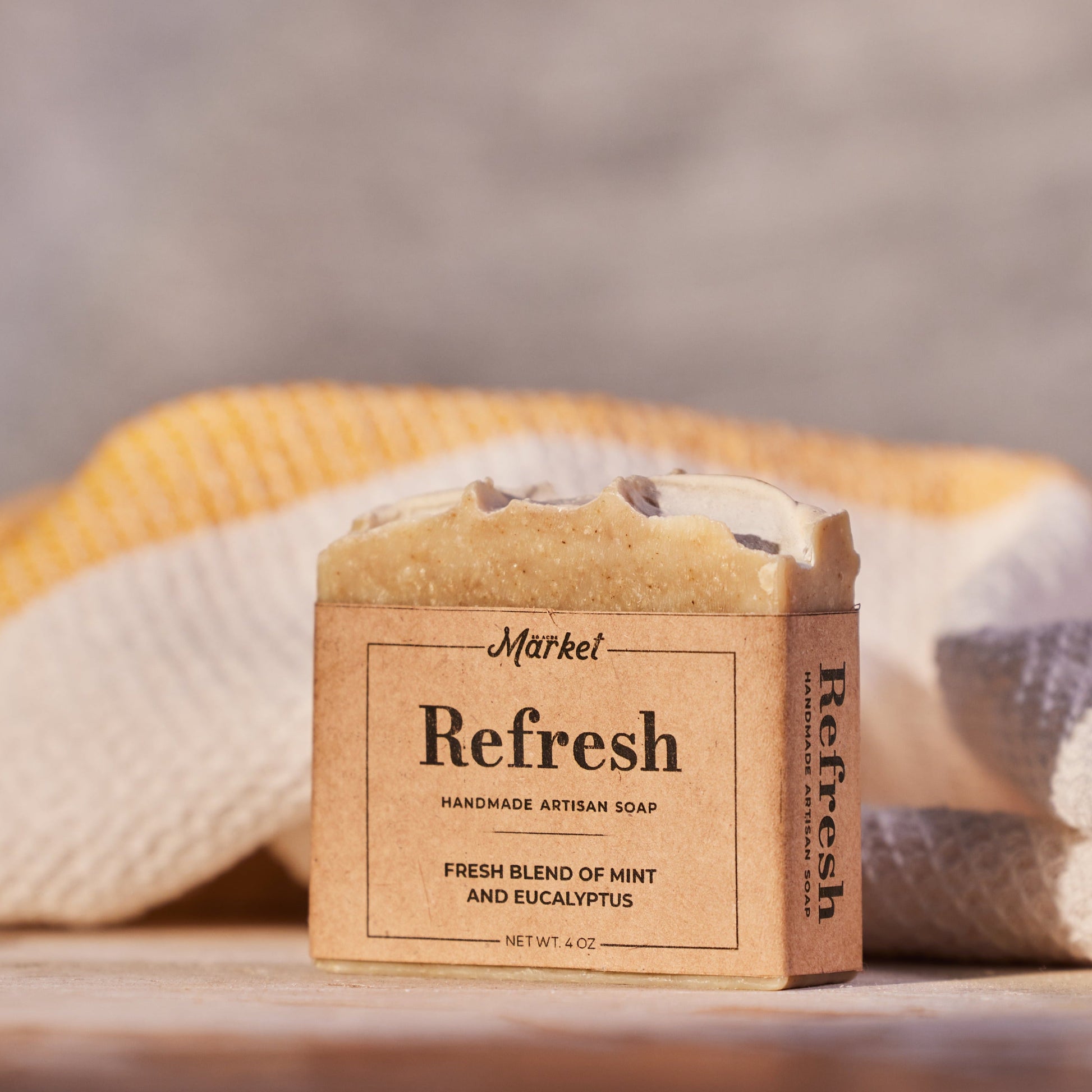 Treat yourself to a bar or two of handmade soap that will leave your skin feeling moisturized and clean. The Refresh Bar soap is a refreshing blend of Therapeutic Essential Oils.