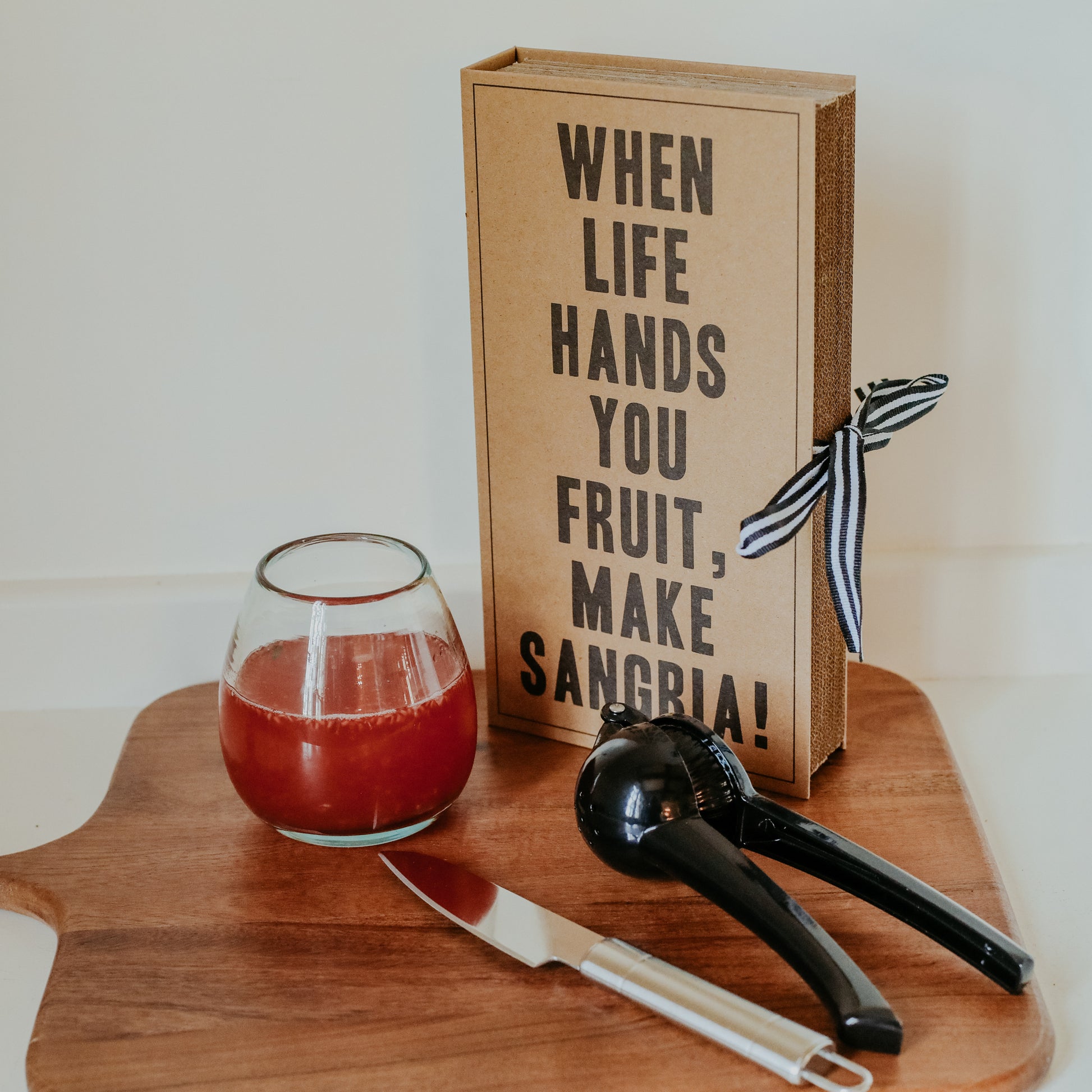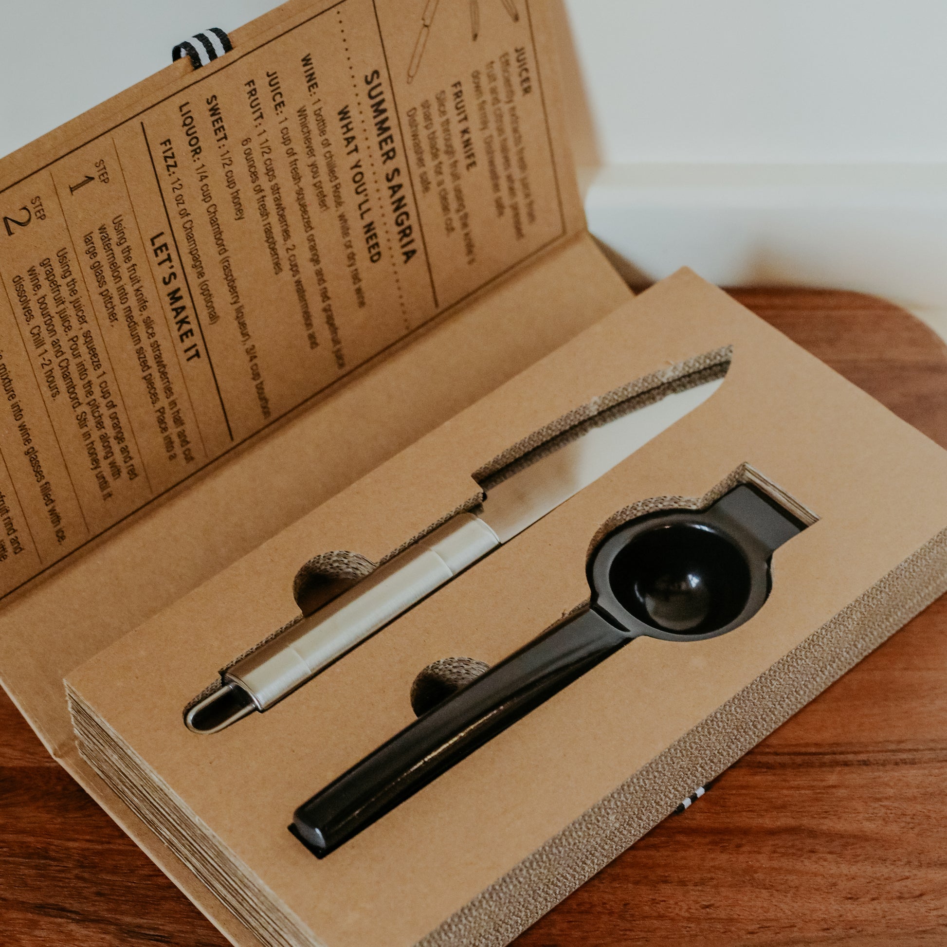 This Sangria Set includes quality tools in a unique package. Give this "book" as a gift to the sangria lover in your life.