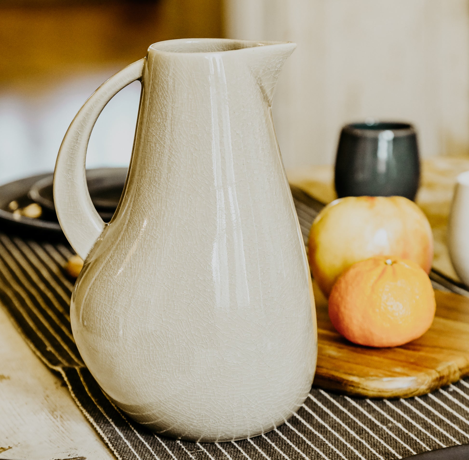 This beautiful and useful Stoneware Pitcher is just what you need to complete your kitchen. With two colors to choose from, this pitcher will allow you to serve your guests in style.