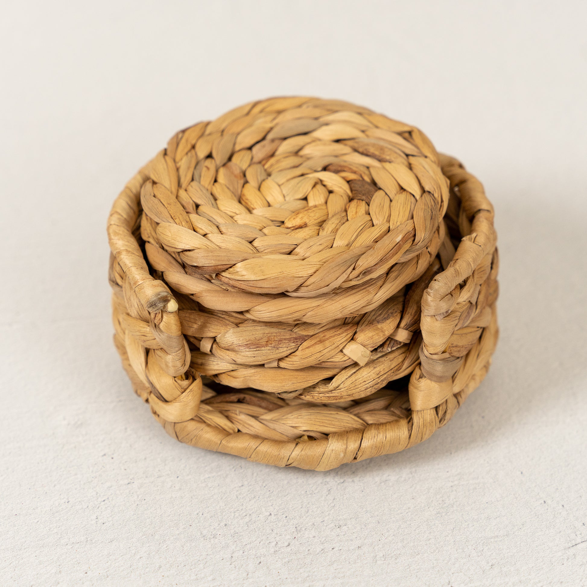 These coasters are perfect for leaving on tables and islands so that drinks won't ruin your surfaces. Made from seagrass, these coasters come in a set of 4 and fit in with any decor style.