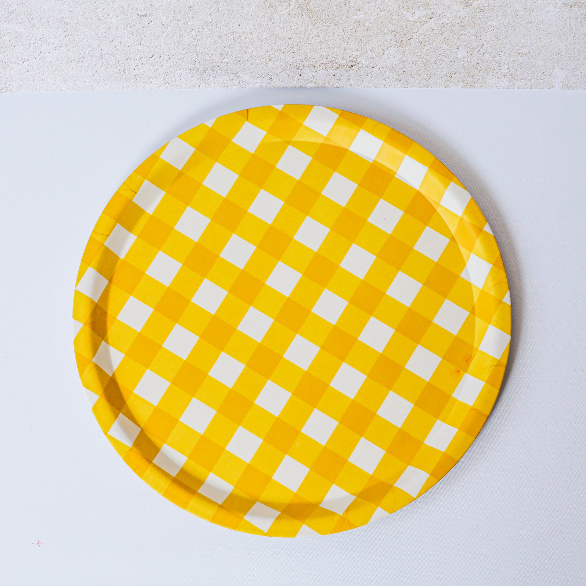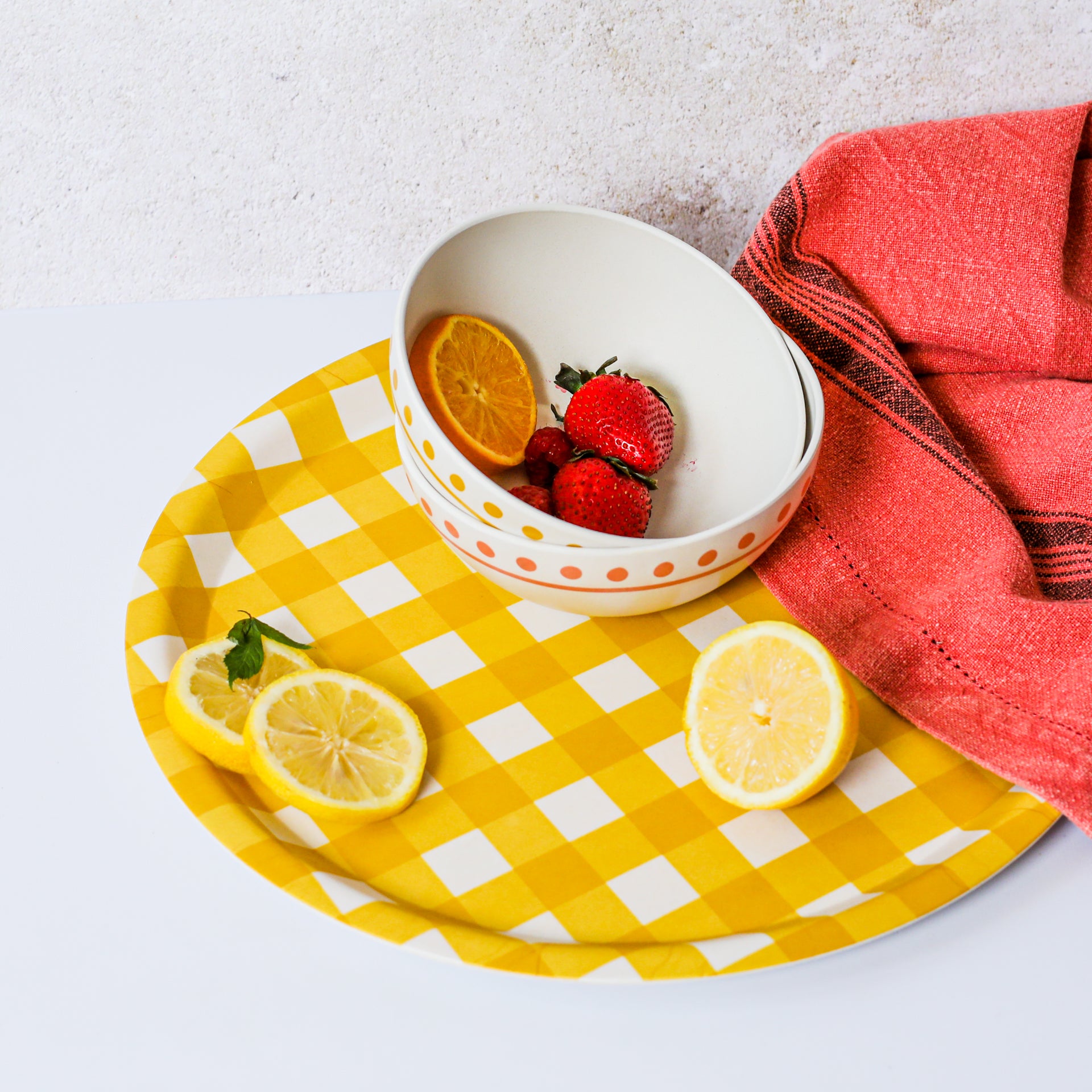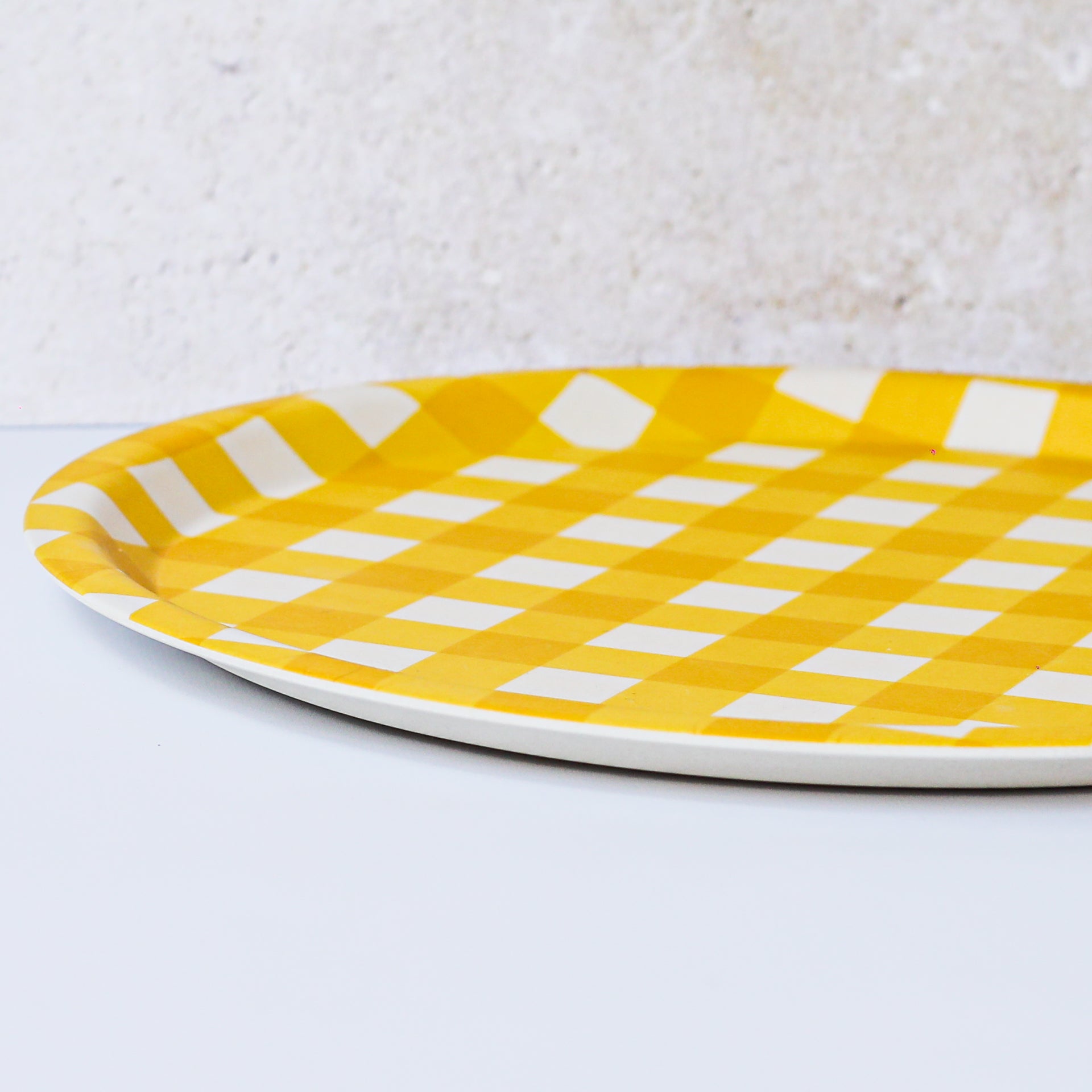 Add this Yellow Check Serving Tray to your collection. Great for parties, this yellow design is sure to brighten up any day.