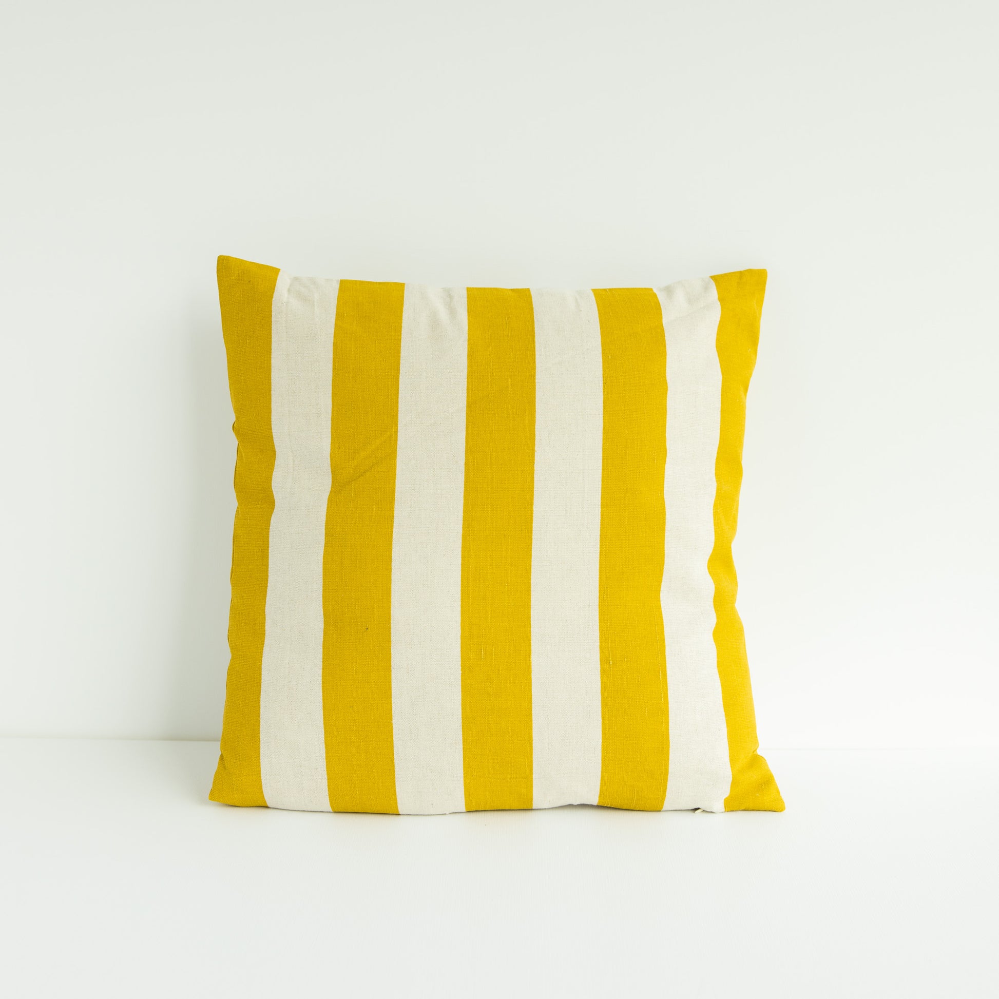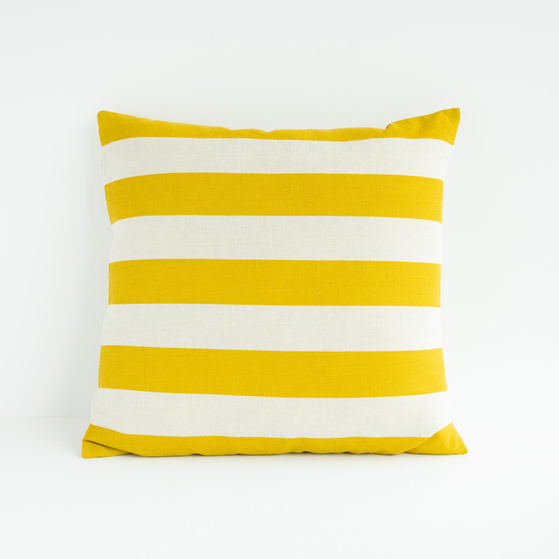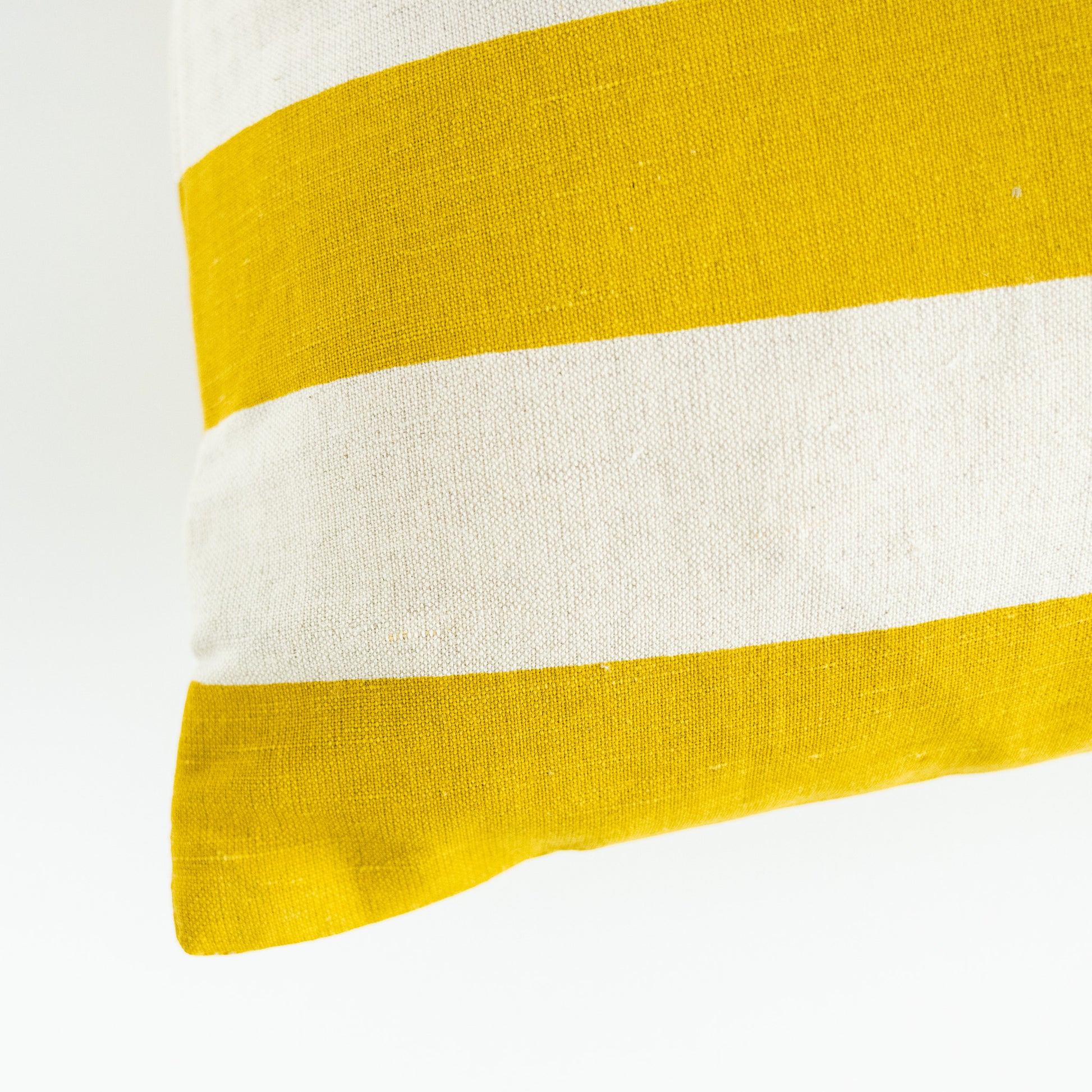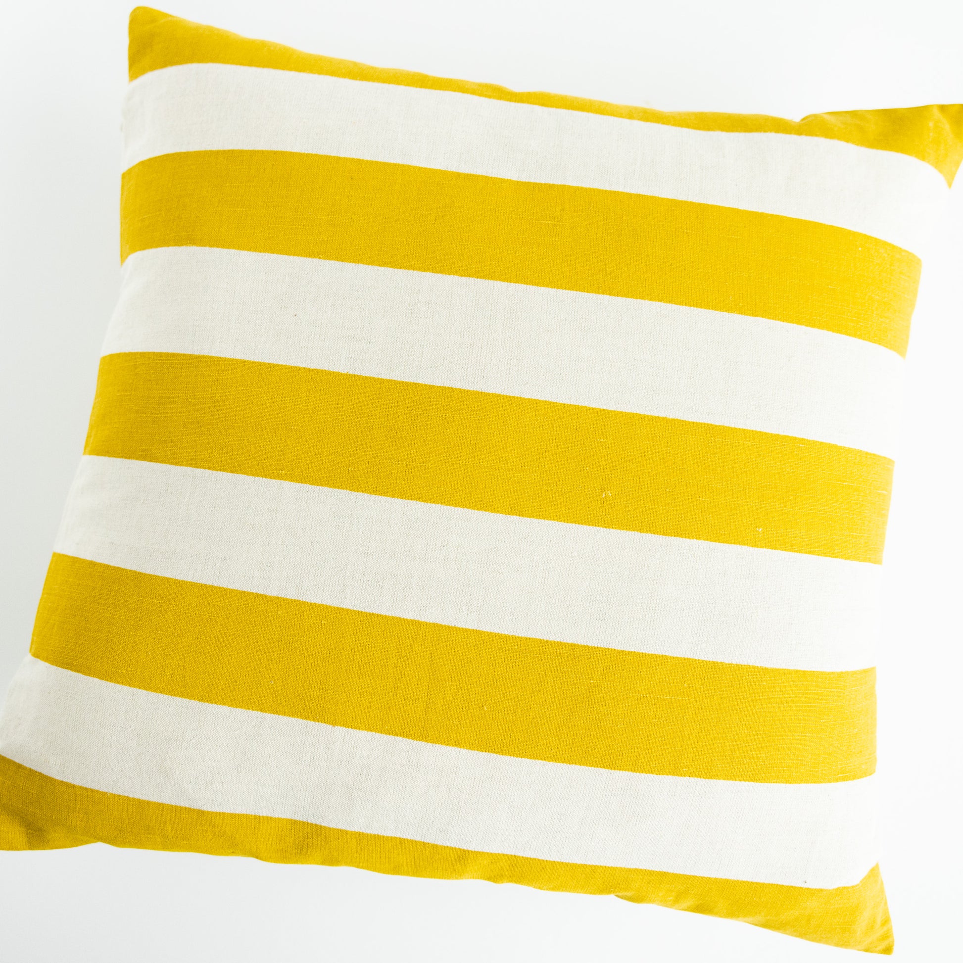 Add some color with our 20" Square Cotton & Linen Printed Pillow with Stripes in Chartreuse & Natural. The vibrant yellow color adds a pop of warmth and style to any space. Crafted from a blend of cotton and linen, this pillow combines comfort with a trendy design to enhance your home decor.